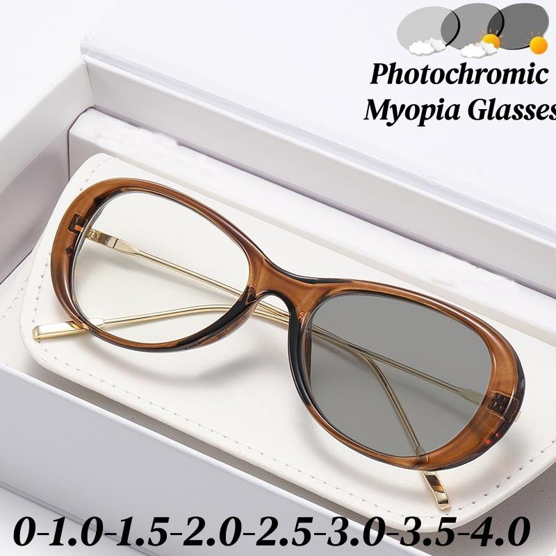 Модный дизайн Круглая оправа Фотохромные очки для близорукости Женские очки против синего света с изменяющимся цветом Очки для близи Минус зрение
