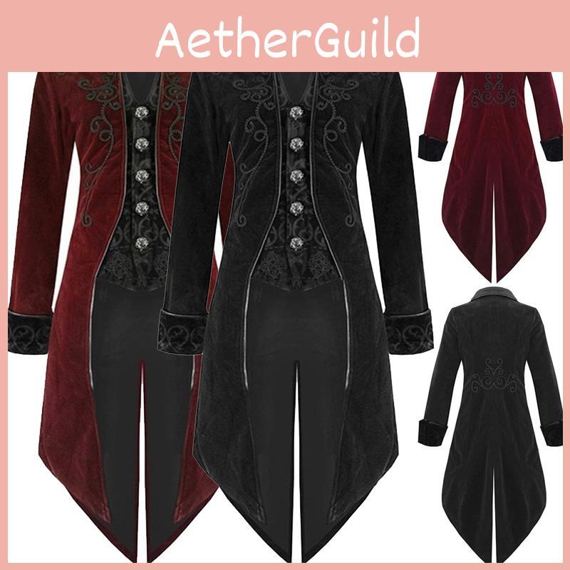Мужчины Фрак Винтажная куртка Гот Стимпанк Униформа Костюм Вечеринка Верхняя одежда Пальто