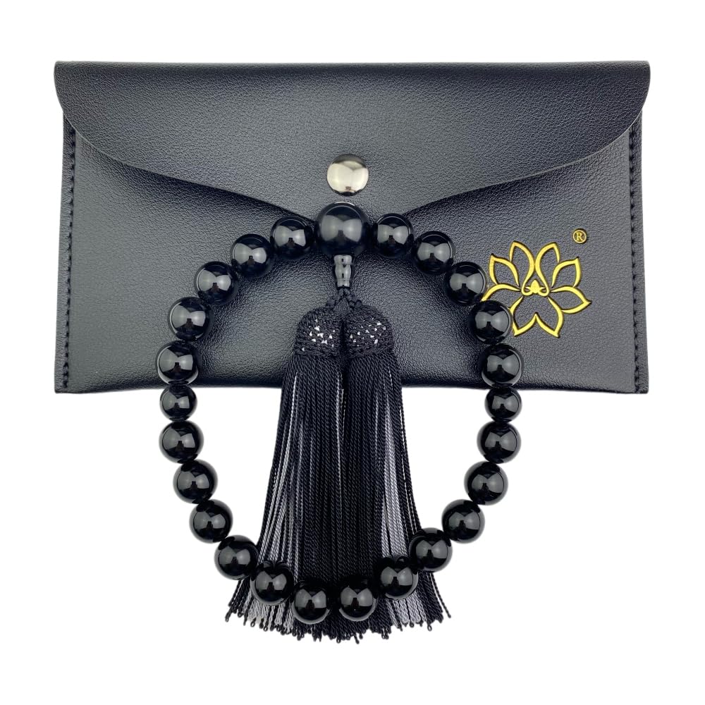 [ЧУДЕСНЫЙ ЛОТОС] Мужские молитвенные бусы, 22 бусины, Оникс, Двухцветная шелковая кисточка, Мешочек для молитвенных бус в комплекте, Подходят для всех сект, Неформальные, Черные,