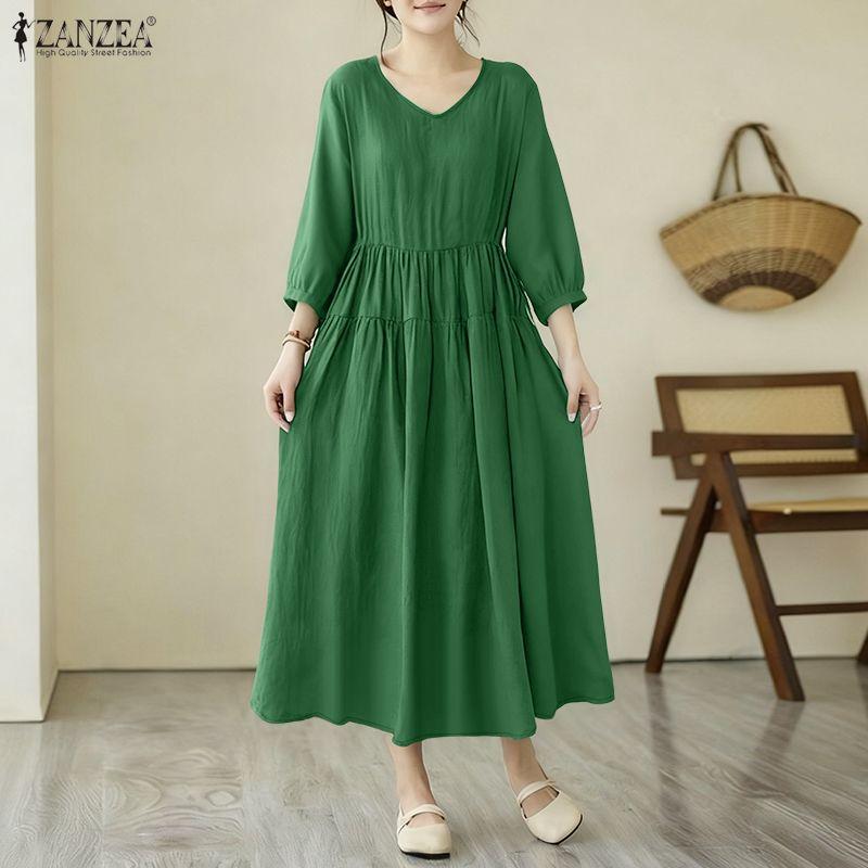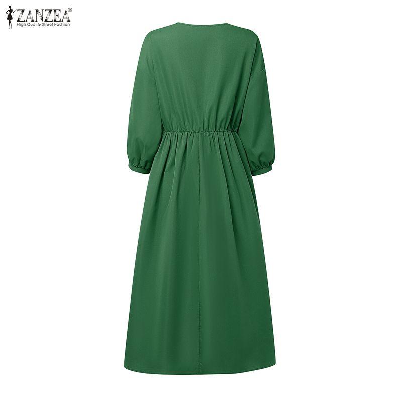 ZANZEA Женское платье с V-образным вырезом, рукавом 3/4, свободного кроя, повседневное