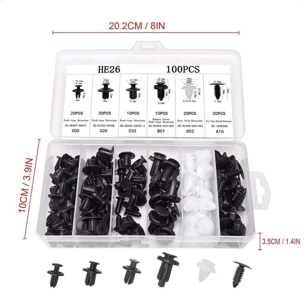 100Pcs Auto Fastener Clip Mixed Car Body Push Retainer Pin Rivet Bumper Door Trim Panel Fastener Kit Car Clips Box or Bag Packag