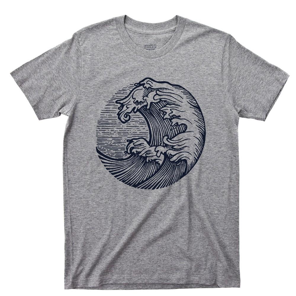 Big Wave T Shirt Fishing Boating Shark Jaws Marine Wildlife Dolphin Mermaid Tee — купить товар онлайн с бесплатной доставкой по всему миру!