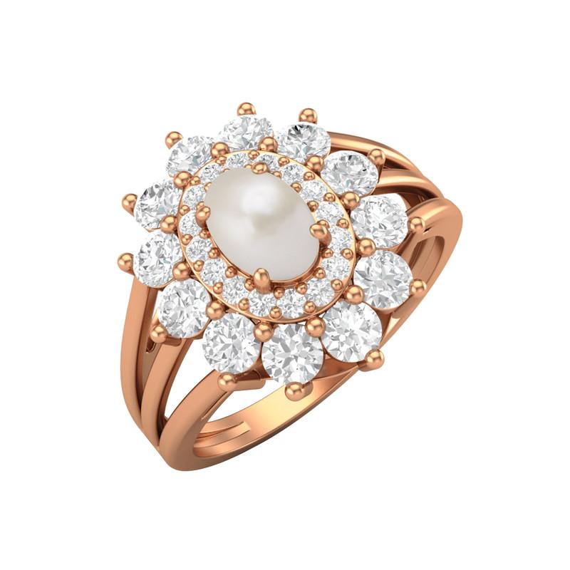 Кольцо с овальным жемчугом 6x4 мм и камнями, сплит-shank, покрытие розовым золотом, 925 пробы — купить товар онлайн с бесплатной доставкой по всему миру!