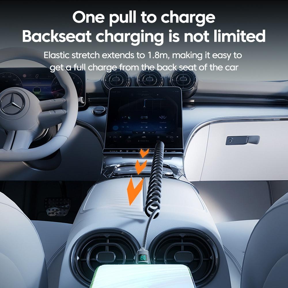 120W USB C To Type C Cable Retractable Car Spring Fast Charging Cable With Digital Display For iPhone 15 Samsung Huawei Xiaomi