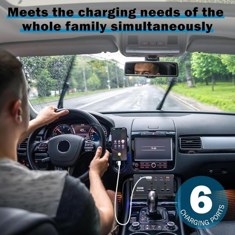 Автомобильный инвертор 200 Вт DC12V в AC220V с USB-портами для планшетов, ноутбуков и мобильных устройств. Для длительных поездок, деловых поездок.