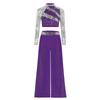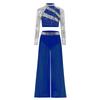 Комплект для выступлений для девочек: кроп-топ с пайетками с длинным рукавом и воротником-стойкой, широкие брюки из струящегося шифона для танцев — купить товар онлайн с бесплатной доставкой по всему миру!