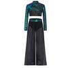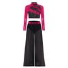 Комплект для выступлений для девочек: кроп-топ с пайетками с длинным рукавом и воротником-стойкой, широкие брюки из струящегося шифона для танцев