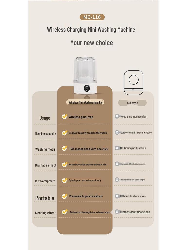 Компактная портативная стиральная машина со стерилизацией синим светом для детской одежды и нижнего белья