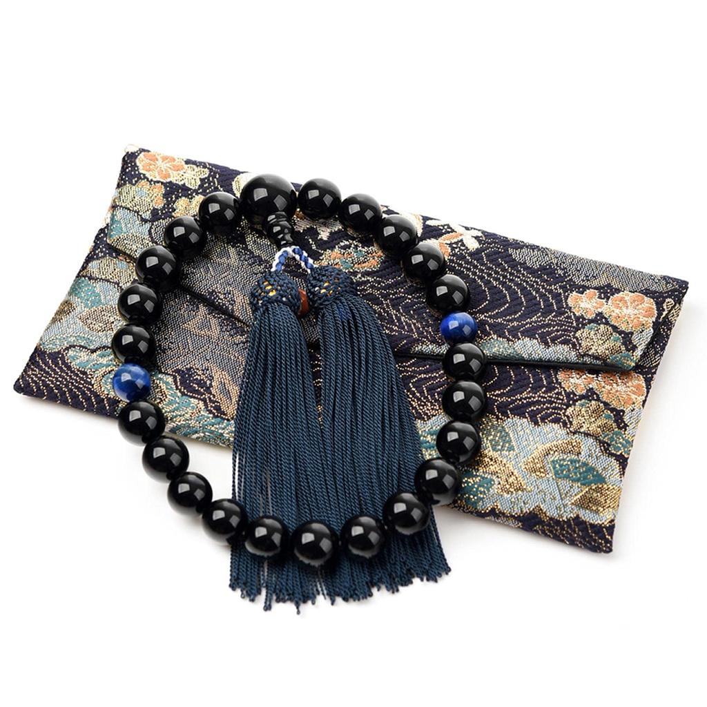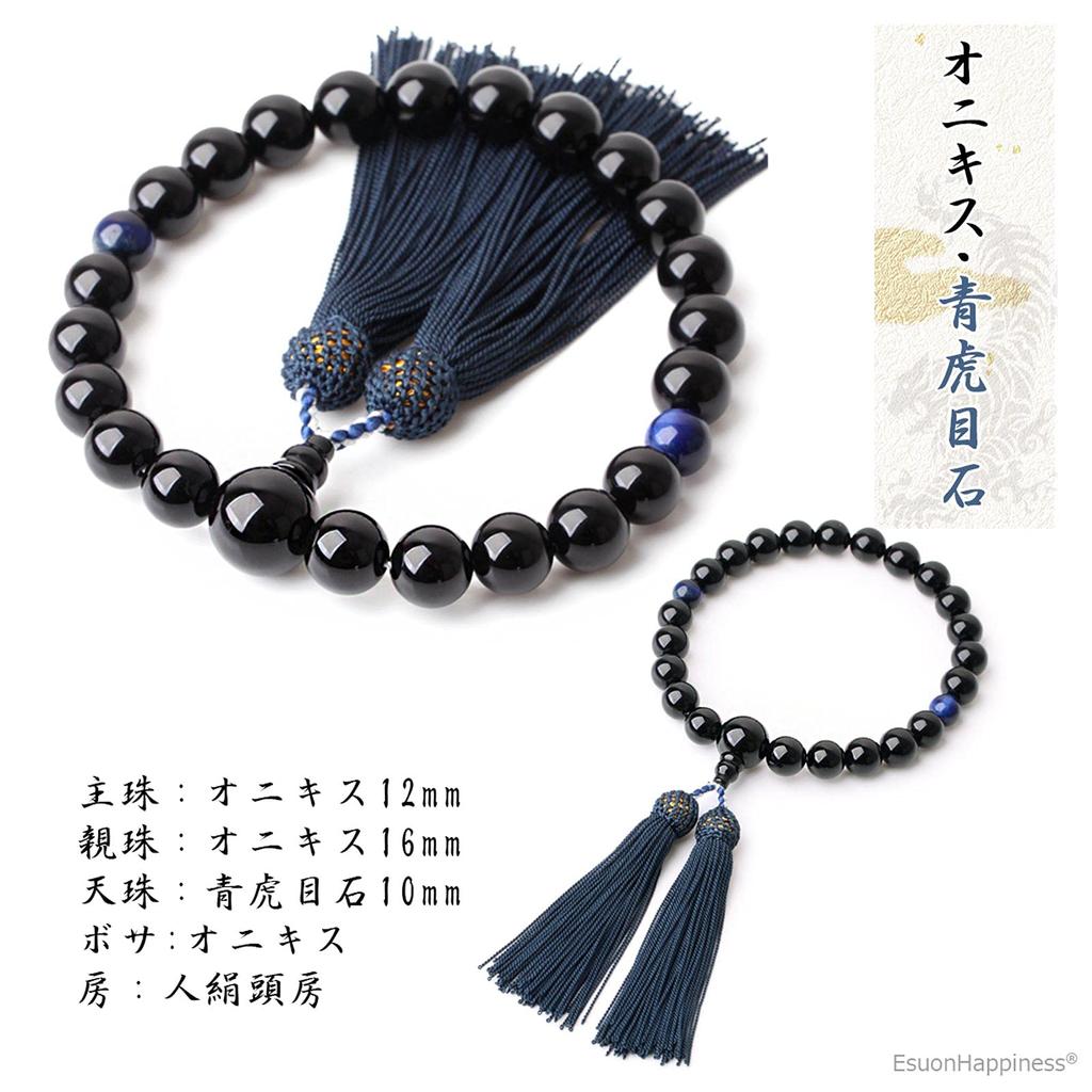 Мужские 12-мм бусины для буддийских молитв из оникса с чехлом, мешочком из парчи Нисидзин и 22 бусинами из тигрового глаза, красного тигрового глаза и синего тигрового глаза. Подходит для