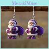 Santa Winter Purple Acrylic Earrings With Creative Design For Christmas Decor