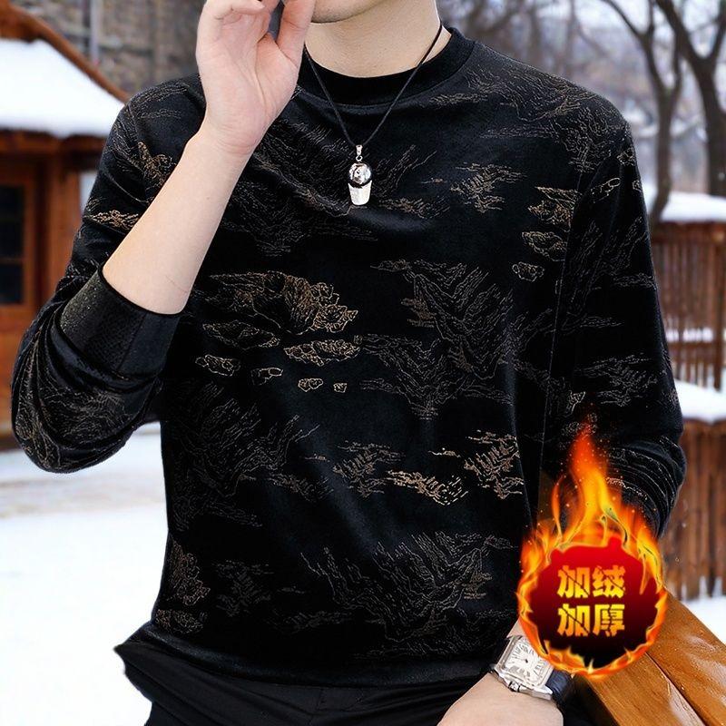 Осенне-зимняя толстовка из золотого бархата, мужская повседневная красивая футболка с длинными рукавами, утолщенная теплая базовая рубашка, топ
