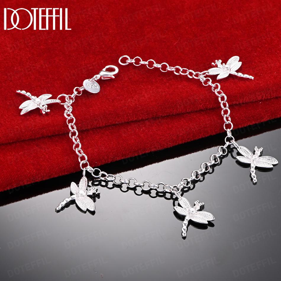 Свадебные украшения из стерлингового серебра 925 пробы, подвеска в виде стрекозы, подарочный браслет