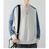 Весна Осень Мужская Мода Колорблок Трендовый Свитшот без Капюшона с Круглым Вырезом Длинный Рукав Повседневный Универсальный Базовый Слой Топ
