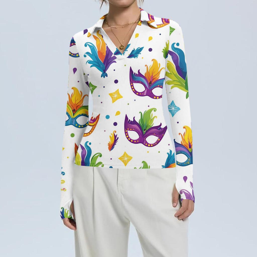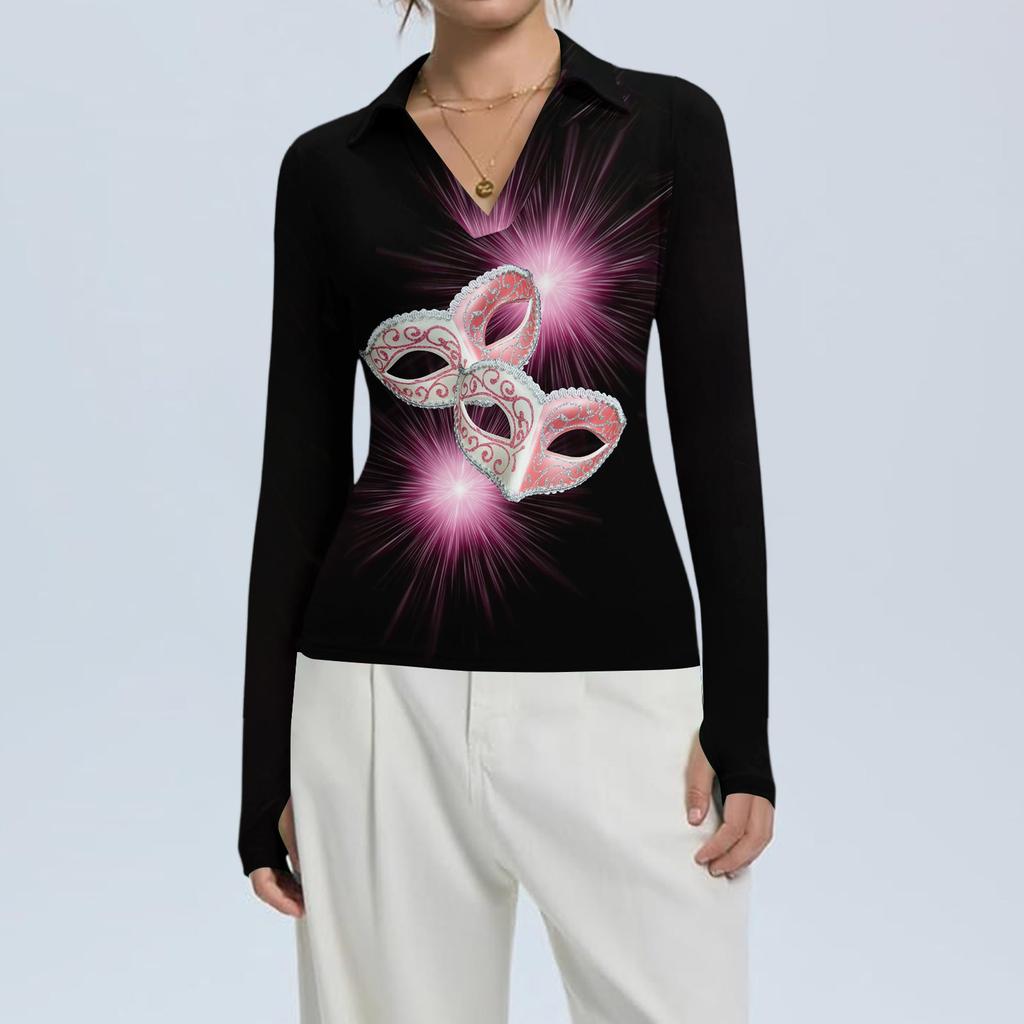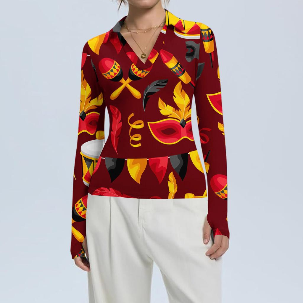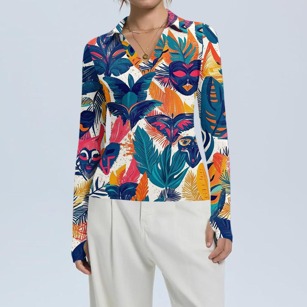Женская Мода Повседневный Принт V-образный Вырез Длинный Рукав Застежка на Пуговицы Топ