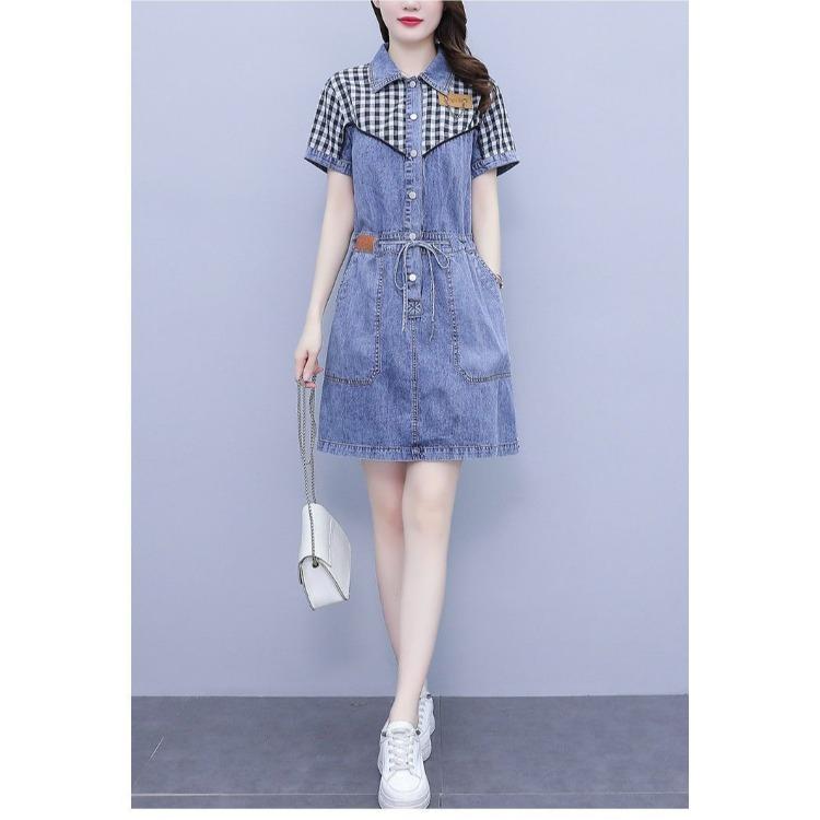 Летнее джинсовое платье большого размера для женщин, повседневное, с вышивкой и пэчворком, одежда для полных дам