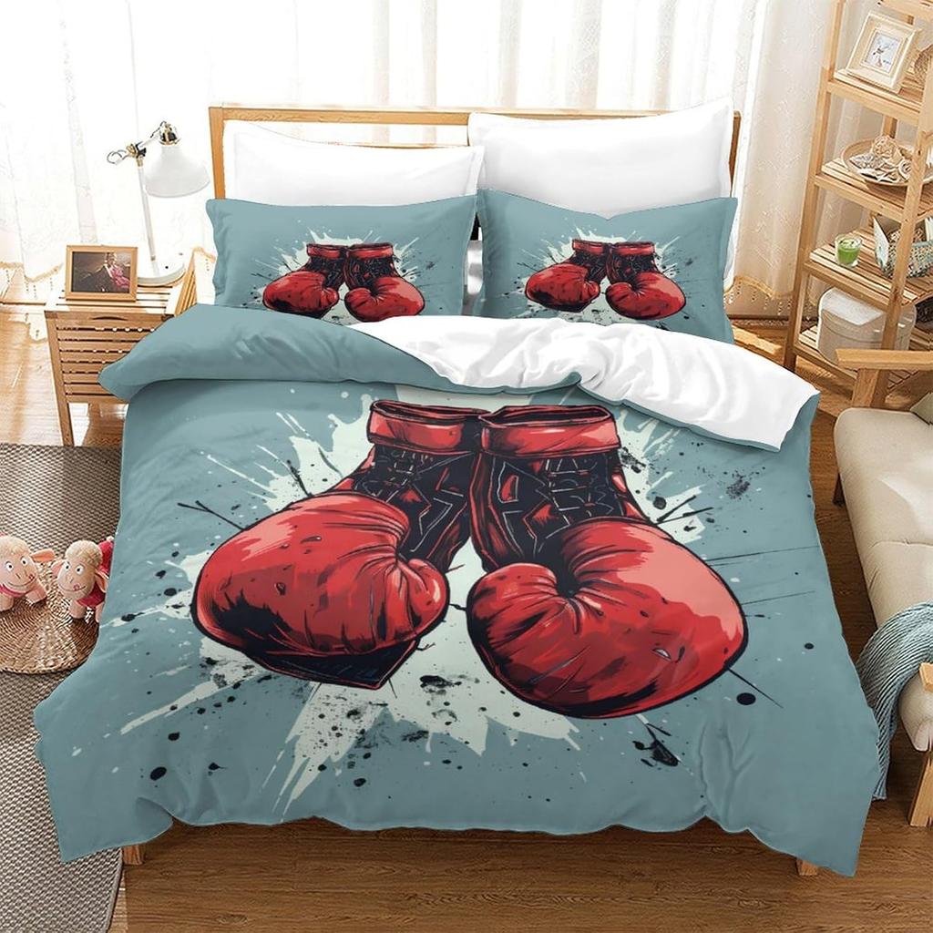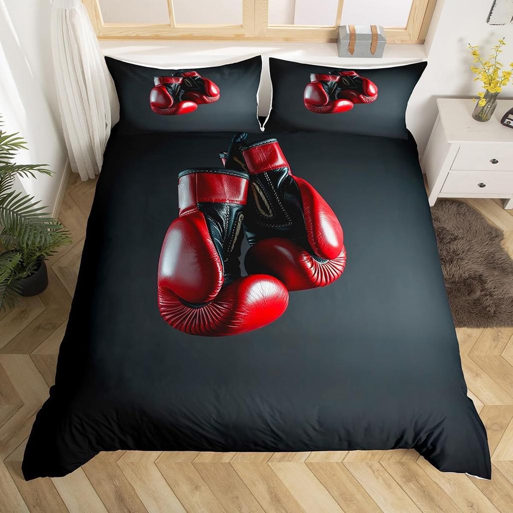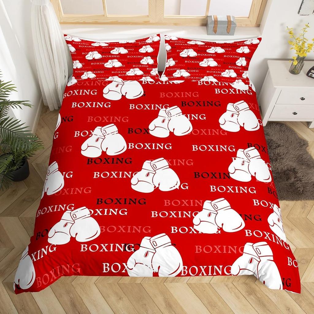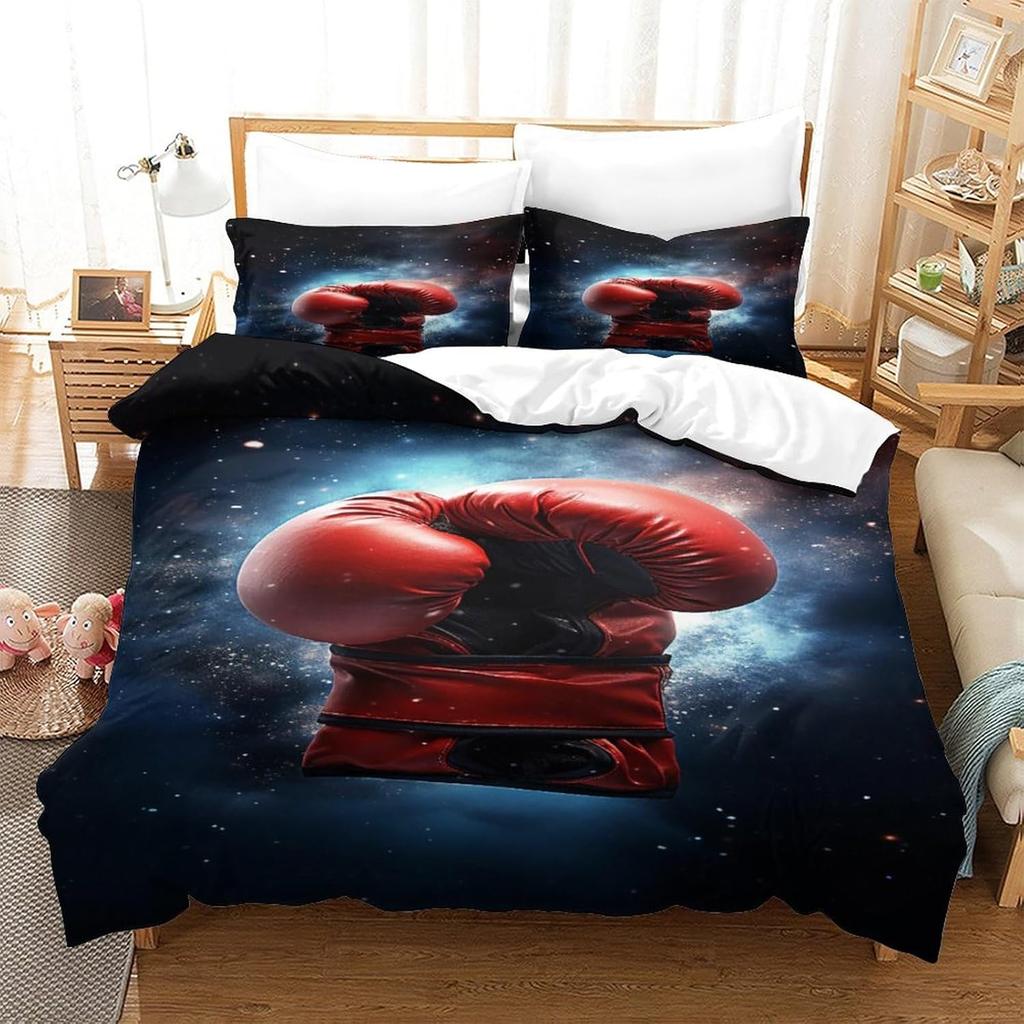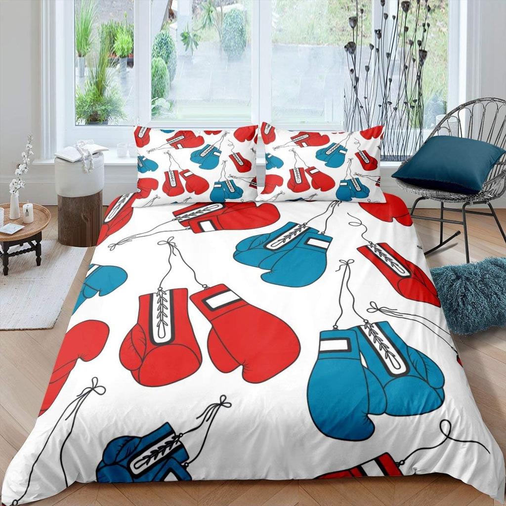 Пододеяльник для мальчика Бокс Твин Квин, Комплект постельного белья на тему спортивных игр, Пододеяльник с боксерскими перчатками для детской комнаты, комнаты подростка, комнаты боксера