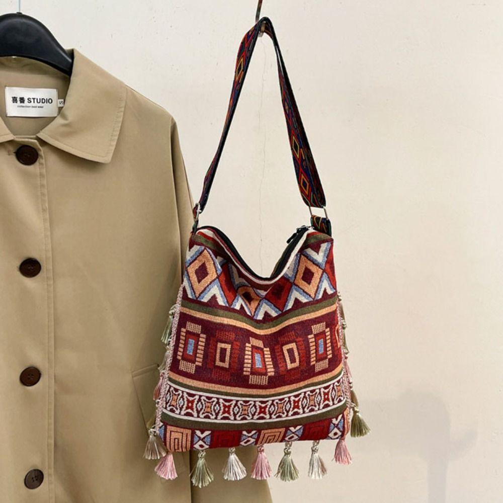 Geometric Ethnic Style Crossbody Bags Woven Messenger Bag All-match Bohemian Tote Bag Travel
