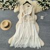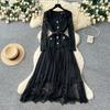 Платье высокого класса для женщин на осень, французская мода, кружевное, с длинными рукавами, пэчворк, с акцентом на талии, плиссированное длинное платье — купить товар онлайн с бесплатной доставкой по всему миру!