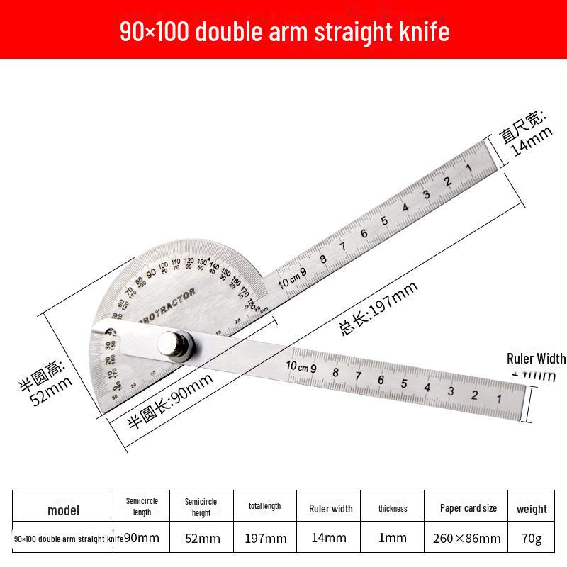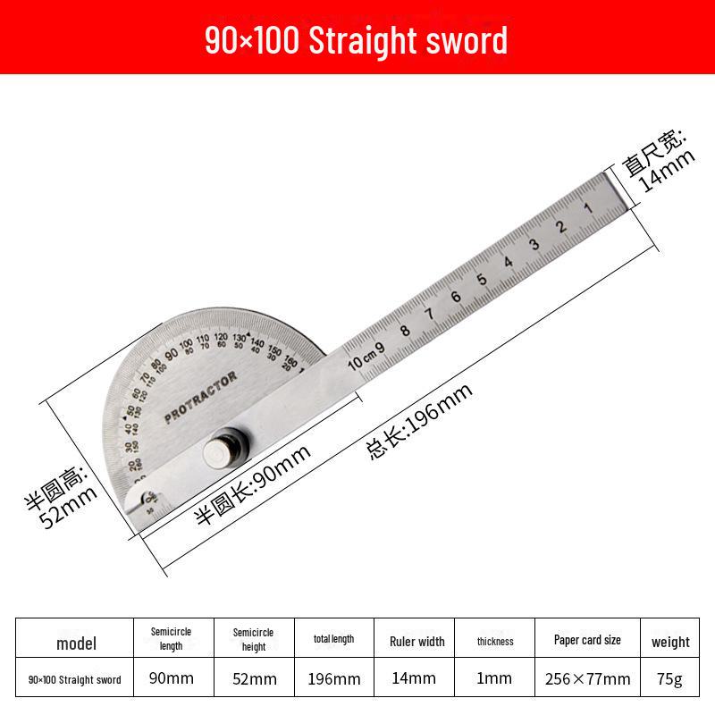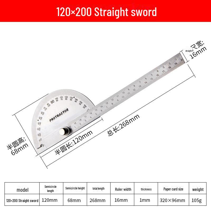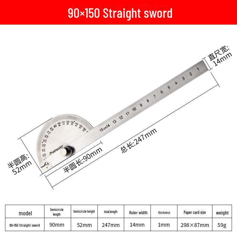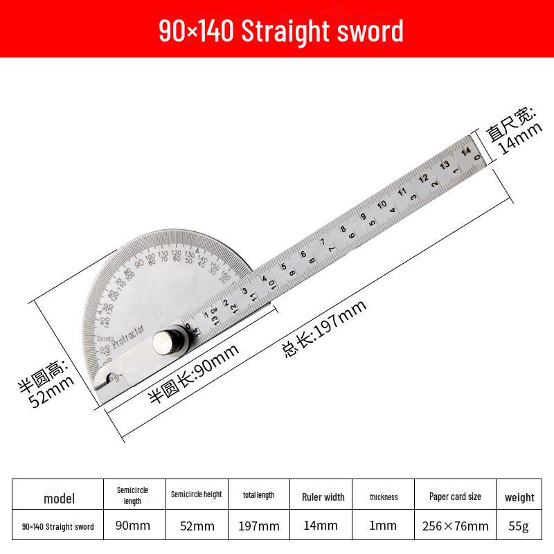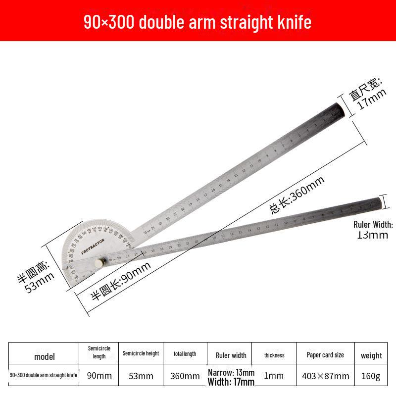 Многофункциональный транспортир и угловая линейка из нержавеющей стали для деревообработки (180 °)