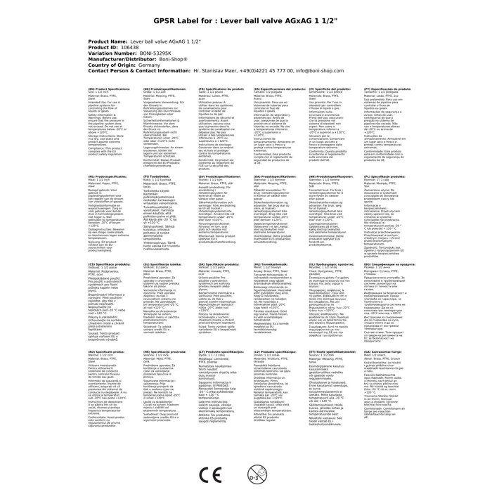 Robinet à boisseau sphérique - BONI-SHOP® - 1 1/2" - Laiton nickelé - Température -20°C à +120°C
