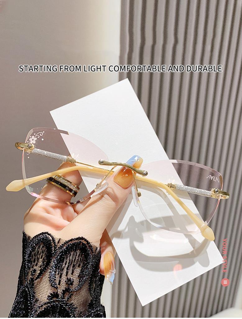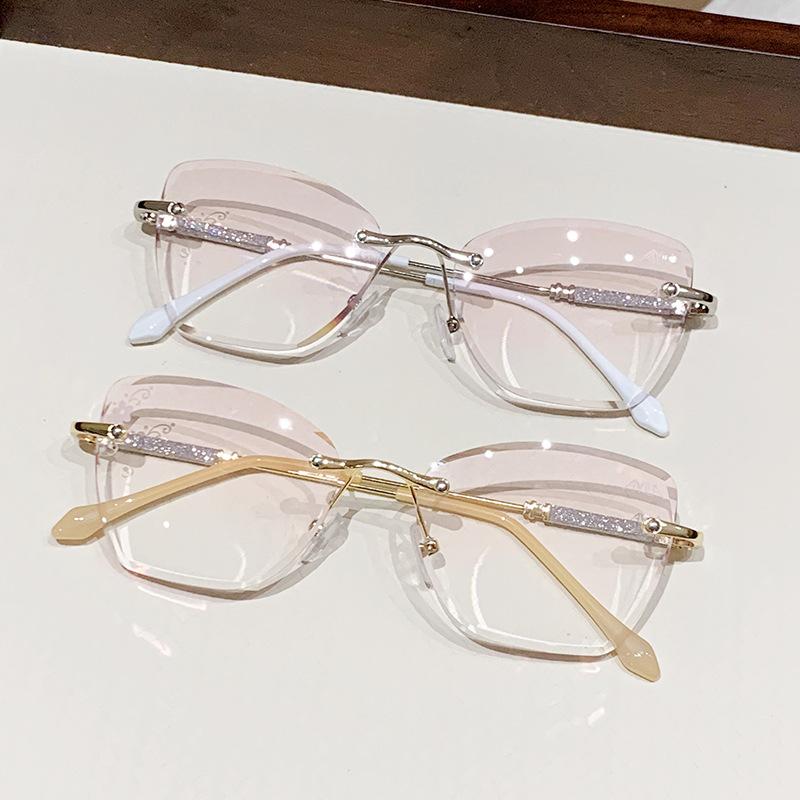 Модные винтажные очки для чтения с линзами без оправы, с необработанным краем, в горошек и с цветочным узором, с защитой от синего света, градиентного цвета, супер блестящие розовые, для чтения одним глазом 60016
