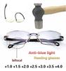 Новые мужские женские безободковые очки для чтения Анти-синий свет Бифокальные для дали и близи Очки с увеличением для пресбиопии +150 +200