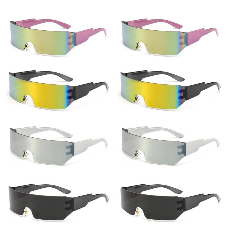 8 ШТ. Стимпанк Y2K Солнцезащитные очки Женские Мужские Квадратные Цельные Очки-обертывания Модные Солнцезащитные очки Большой оправы для женщин
