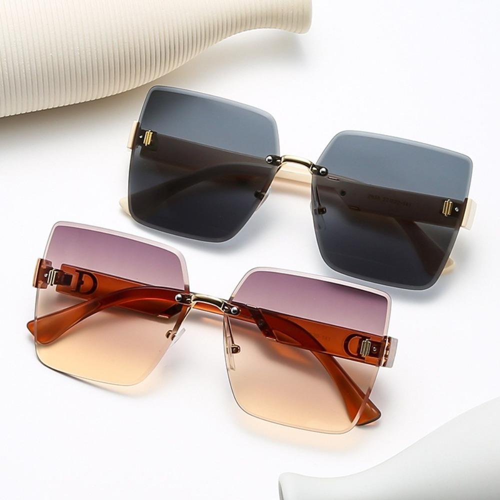 Квадратные солнцезащитные очки без оправы с обрезанным краем, женские модные солнцезащитные очки с защитой от УФ-лучей
