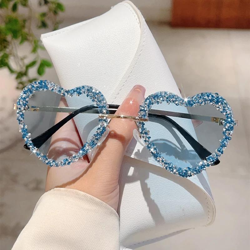 Солнцезащитные очки в форме сердца со стразами Женские Новая мода Декоративные солнцезащитные очки Шикарные Милые Пляжные Отпускные Очки