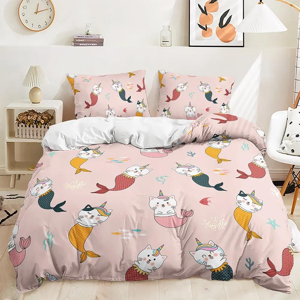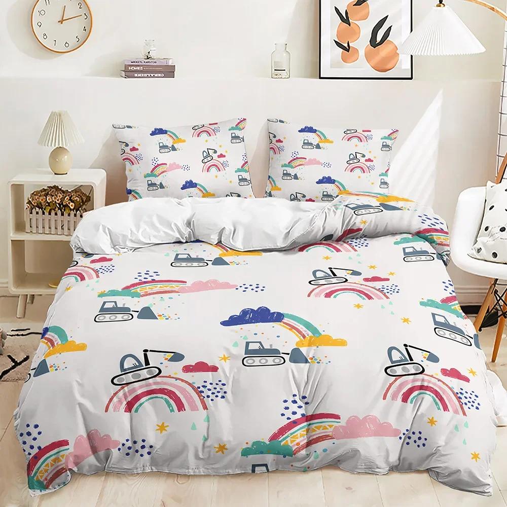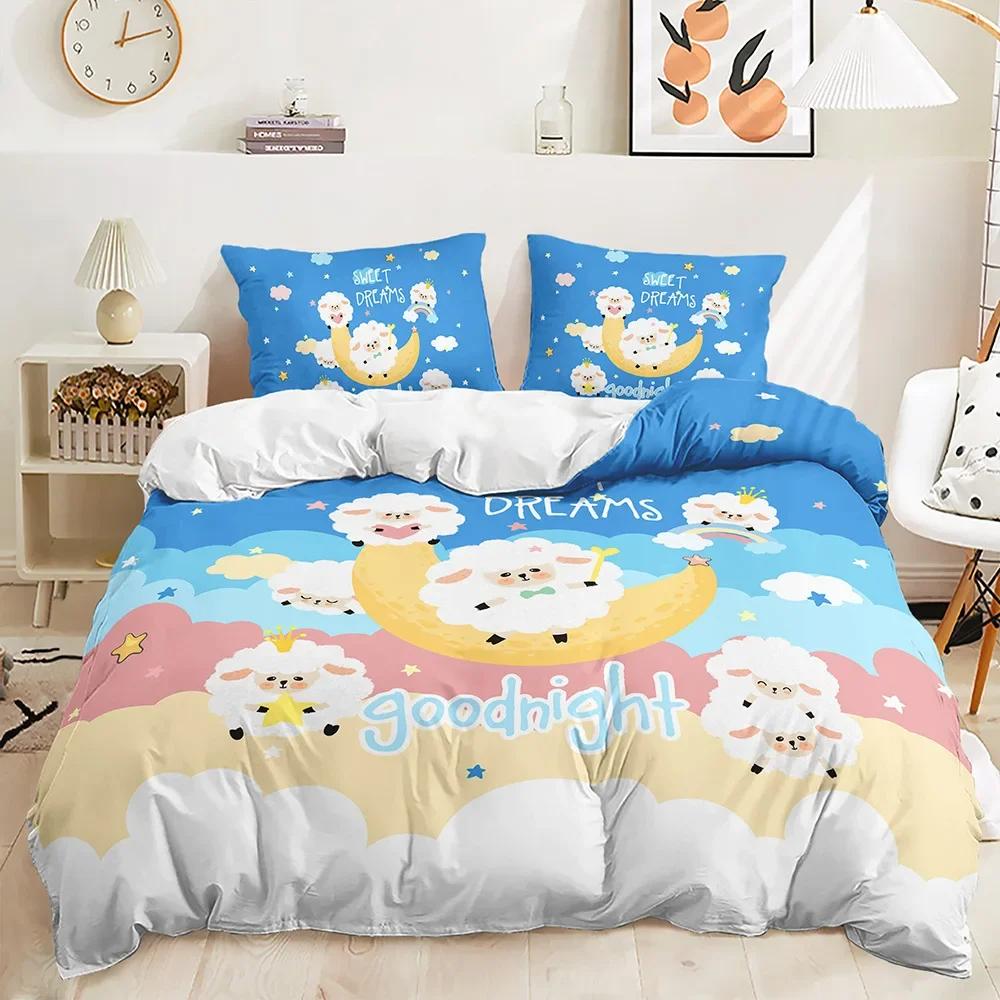 Cute Sheep Duvet Cover Set Twin King Cartoon Animal Bedding Set Polyester Rainbow Moon Comforter Cover For Kids Girl Kawaii Room