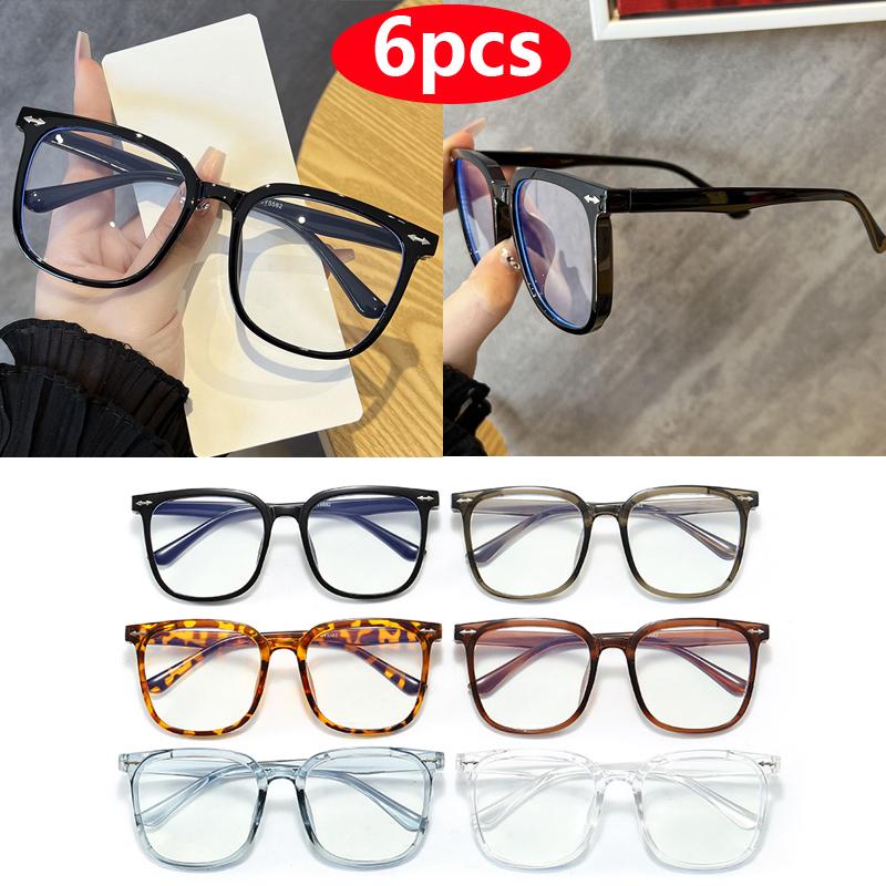 6pcs Square Myopia Glasses Frame Women Men New Oversized Brand Eyeglasses Frames Anti Blue Light Glasses
