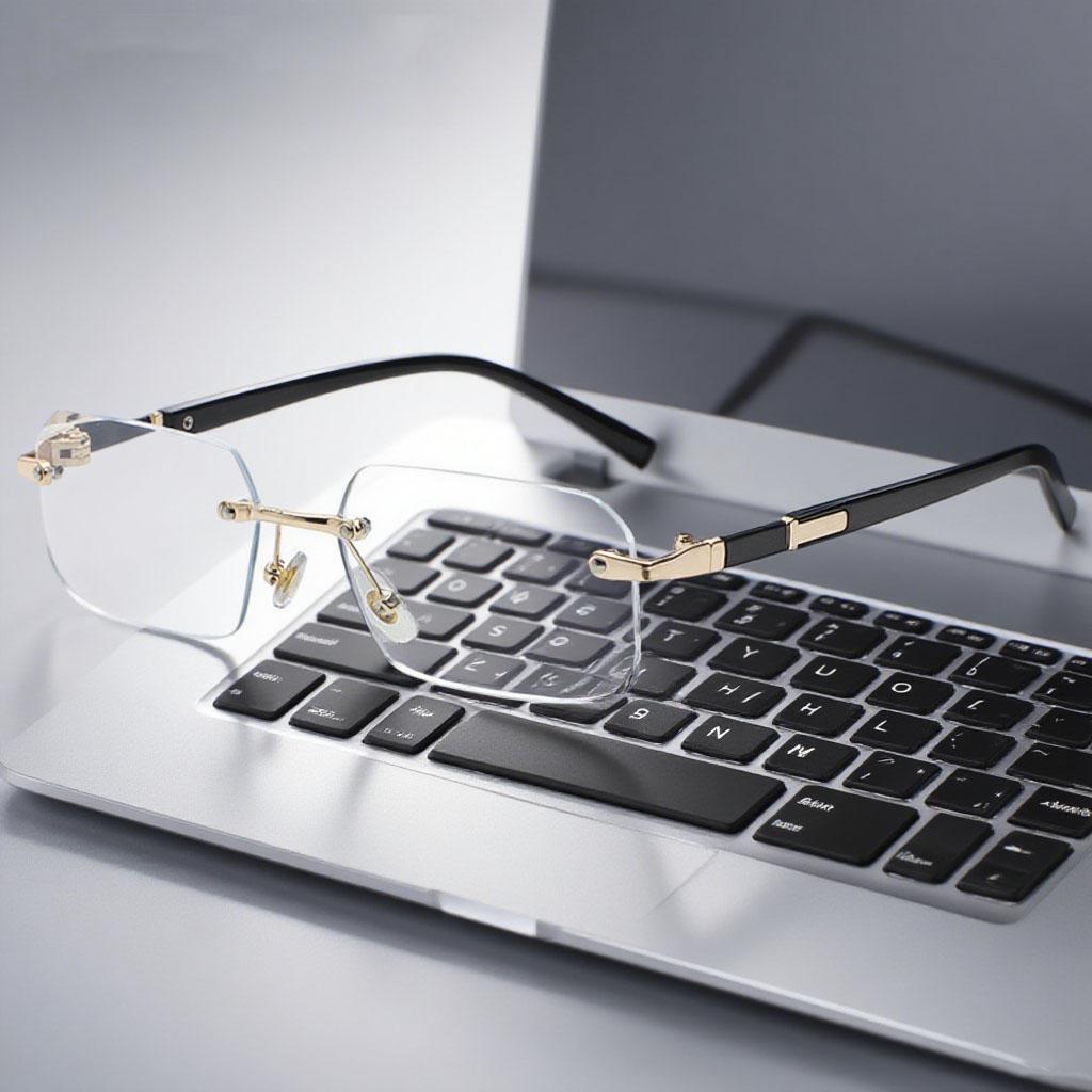 Модные Безободковые Очки для Чтения с Резкой Края, Деловые, Защищающие от Синего Света, Очки для Пресбиопии, Тренд, Безободковые Компьютерные Очки