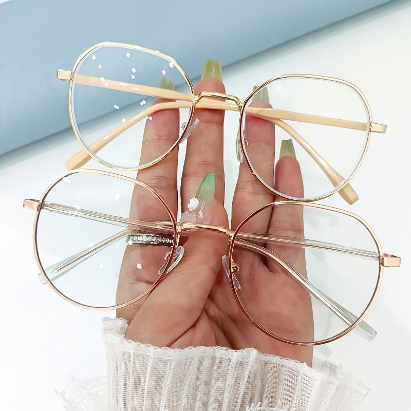 2 пары простых очков с овальной металлической оправой и прозрачными линзами, милые и модные очки, меняющие цвет