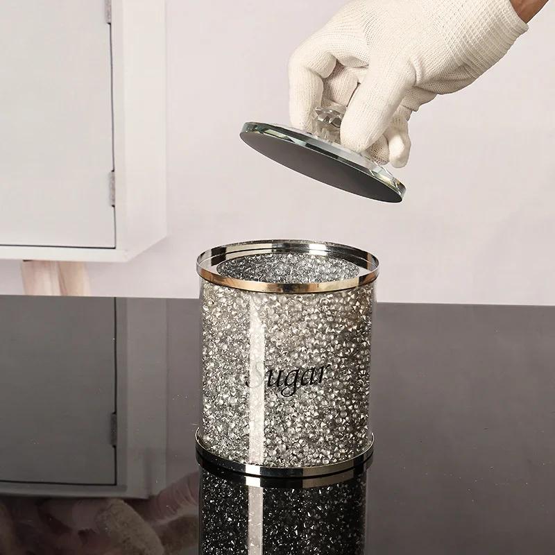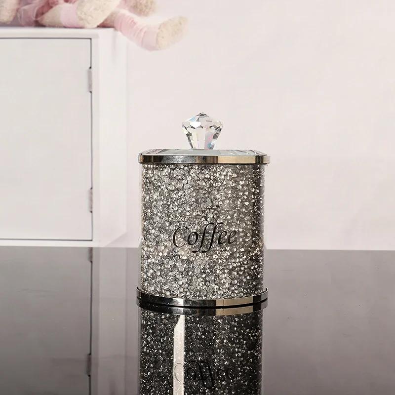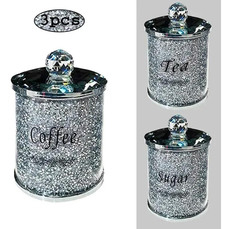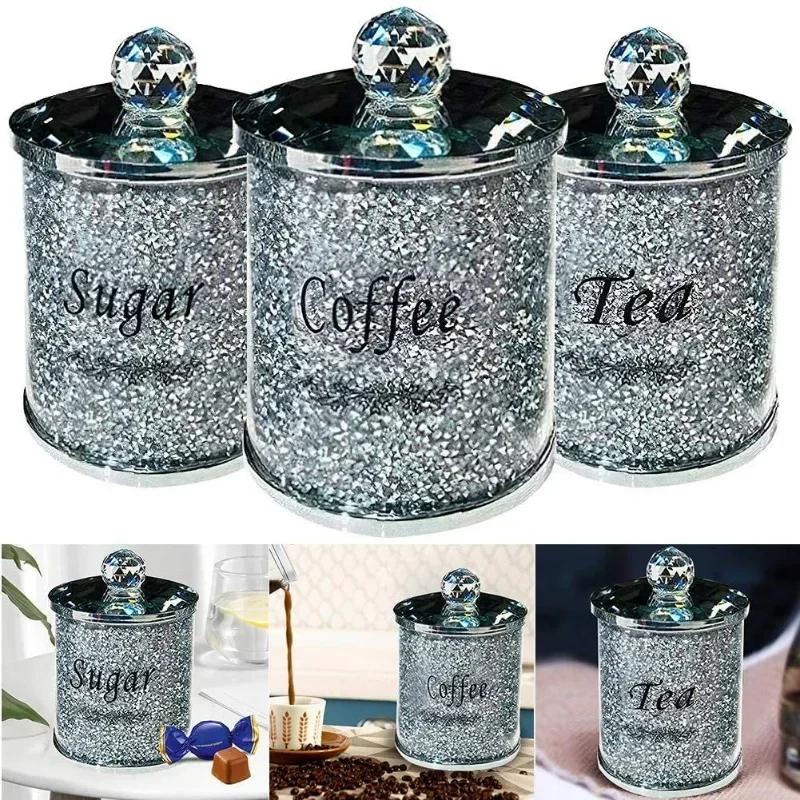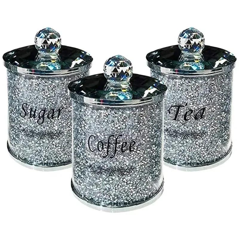 Набор из 3 шт. Коробки для хранения кофе, сахара, чая, с кристаллами, измельченными алмазами, кухонный контейнер для хранения, ручная работа, из хрустального стекла для кофе