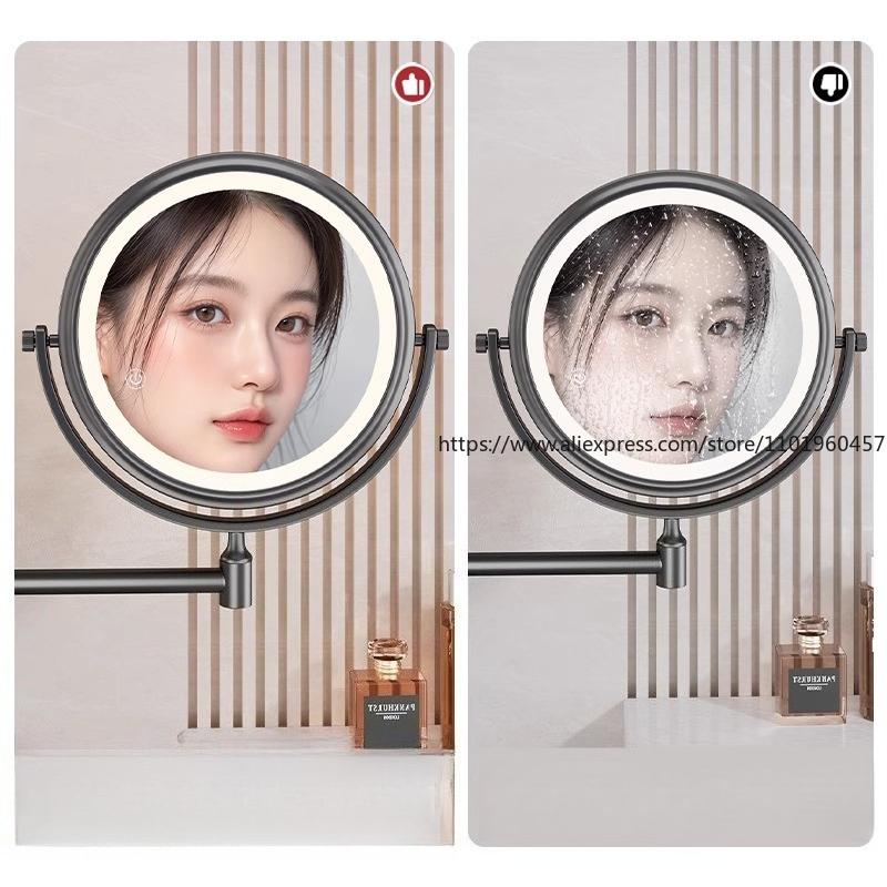 Присоска для ванной с подсветкой, зеркало для макияжа, настенное, выдвижное, складное, без отверстий, вращающееся увеличительное зеркало для красоты