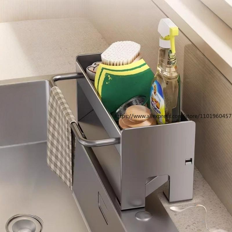 Полка для кухонного смесителя из нержавеющей стали, стойка для хранения на столешнице раковины, бытовая стойка для сушки губок, тряпок и посудных полотенец