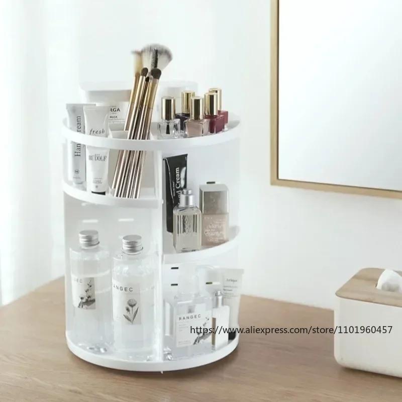 Вращающийся на 360 градусов органайзер для макияжа - Модная коробка для хранения косметики и подставка для кистей