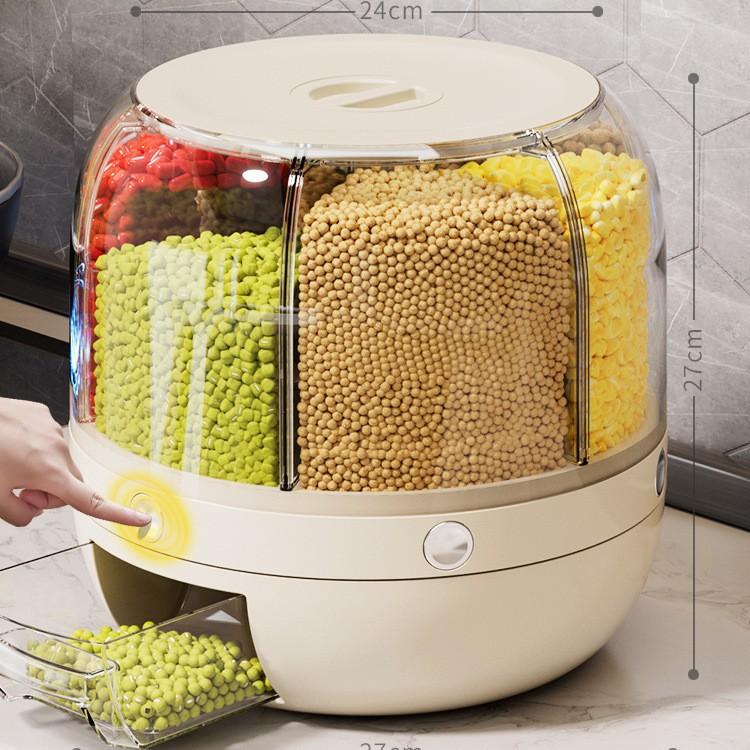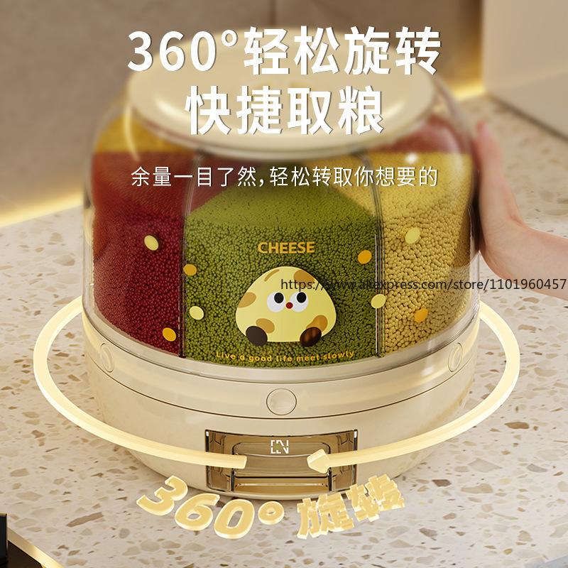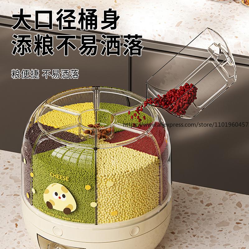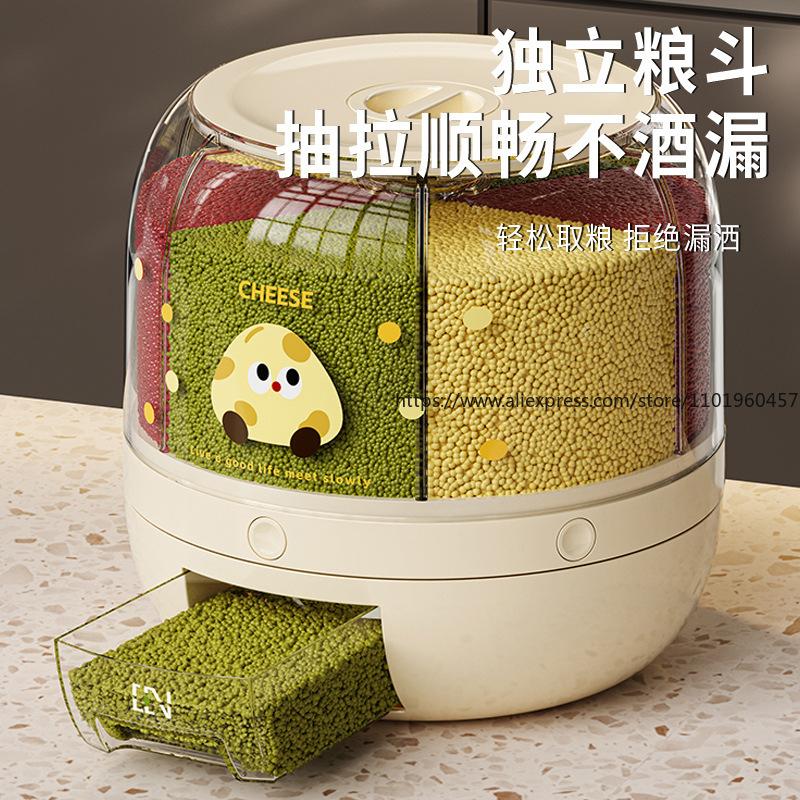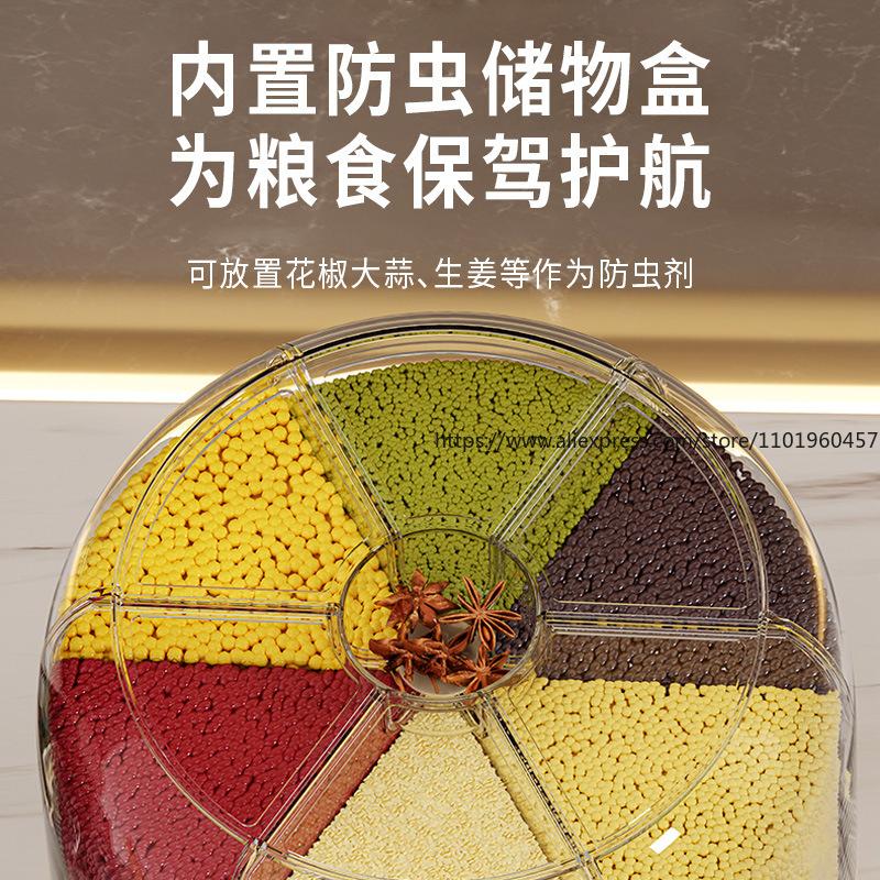 Вращающийся многосекционный контейнер для хранения риса, пластиковый герметичный органайзер для зерна, защищенное от насекомых, влагостойкое ведро для риса