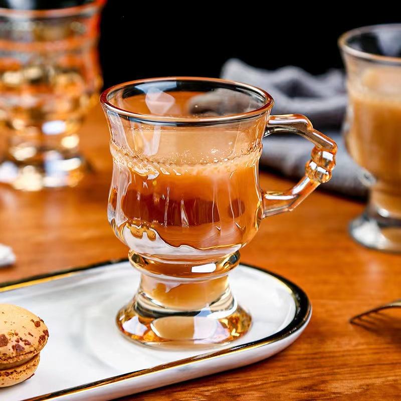 Набор из 4 штук, чашка в стиле ретро, европейский стиль, чашка из янтарного стекла, чашка для напитков, бытовая, большой объем