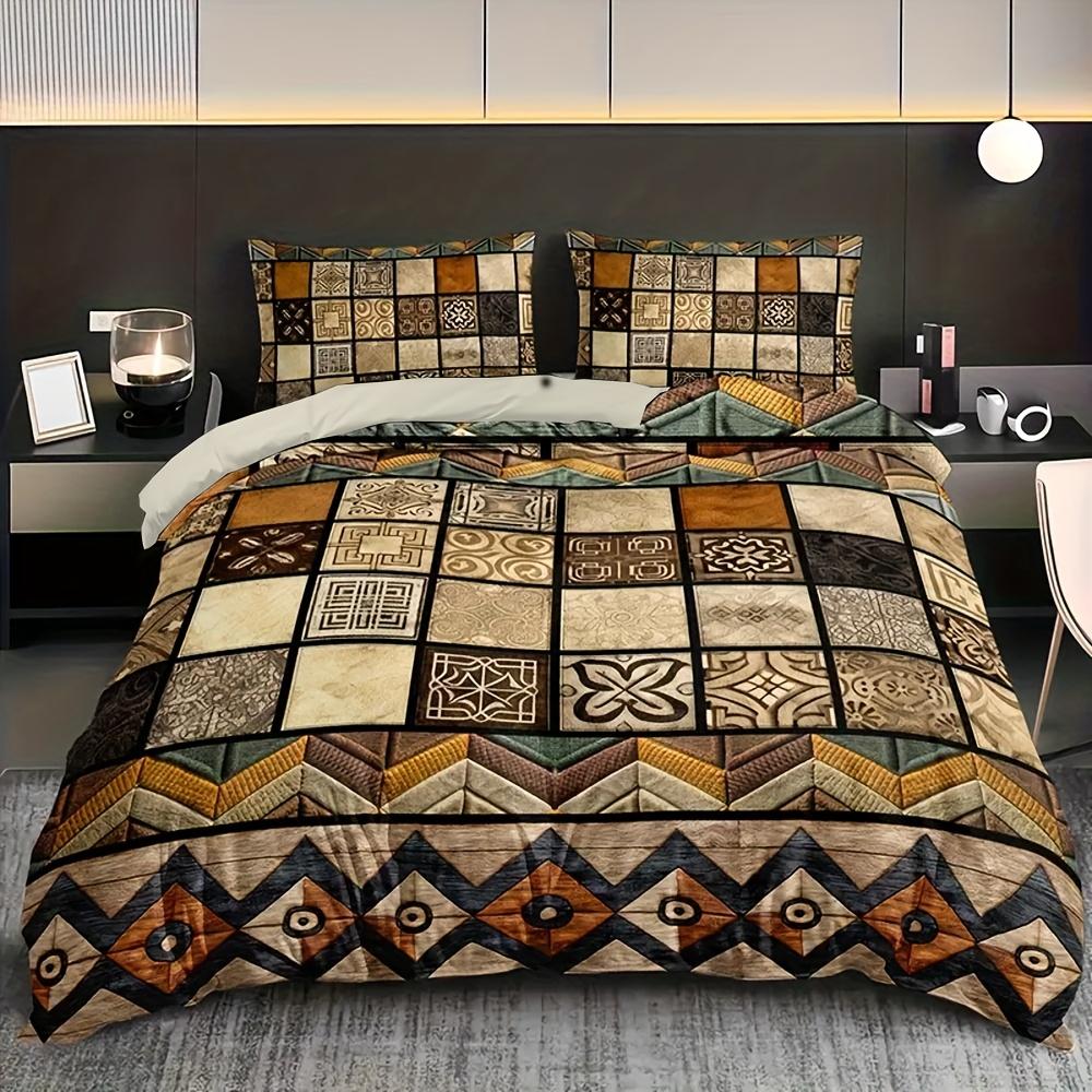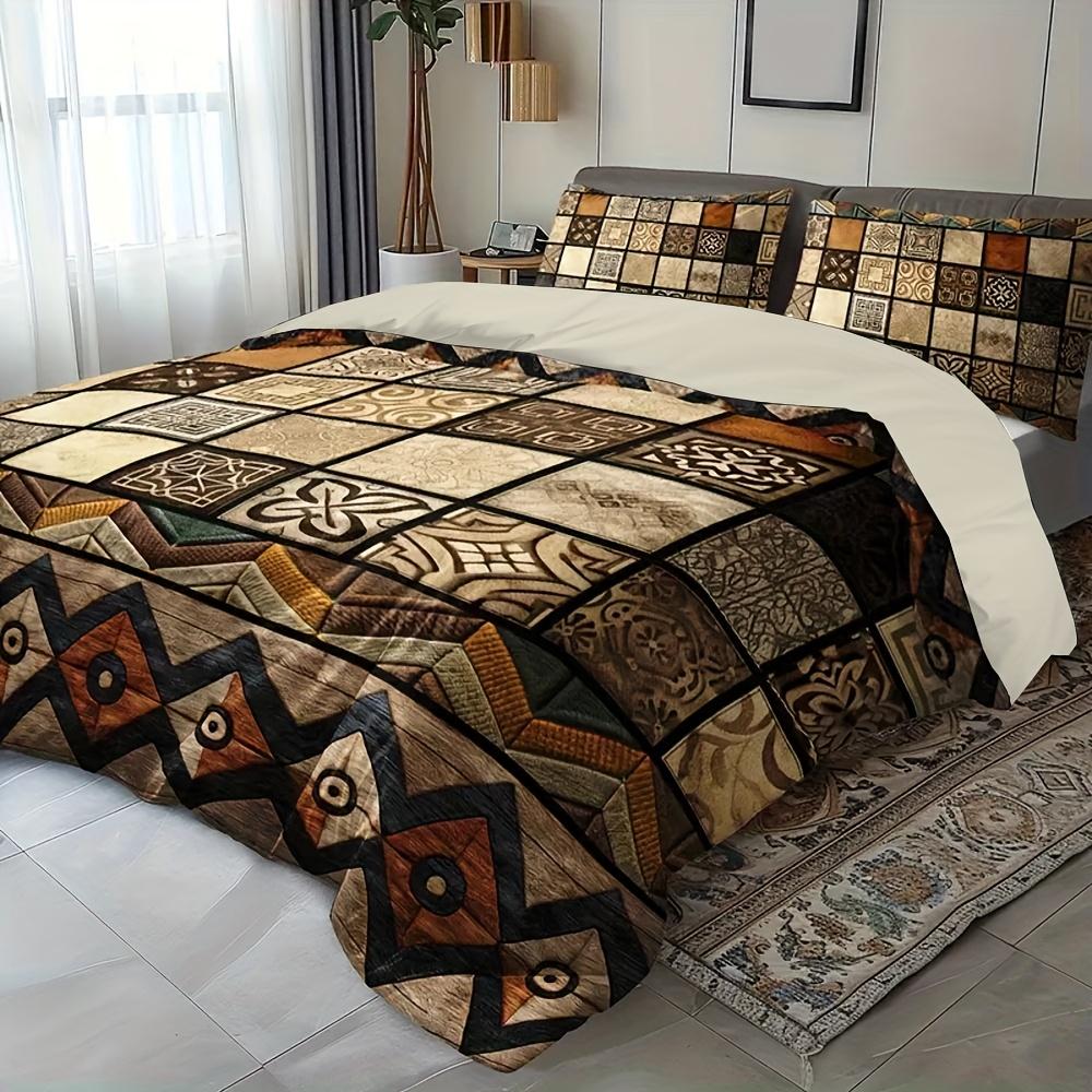 Комплект пододеяльника в стиле ретро, с геометрическим пэчворком в племенном стиле, с HD-печатью, всесезонное постельное белье с наволочками для домашнего декора и декора общежития
