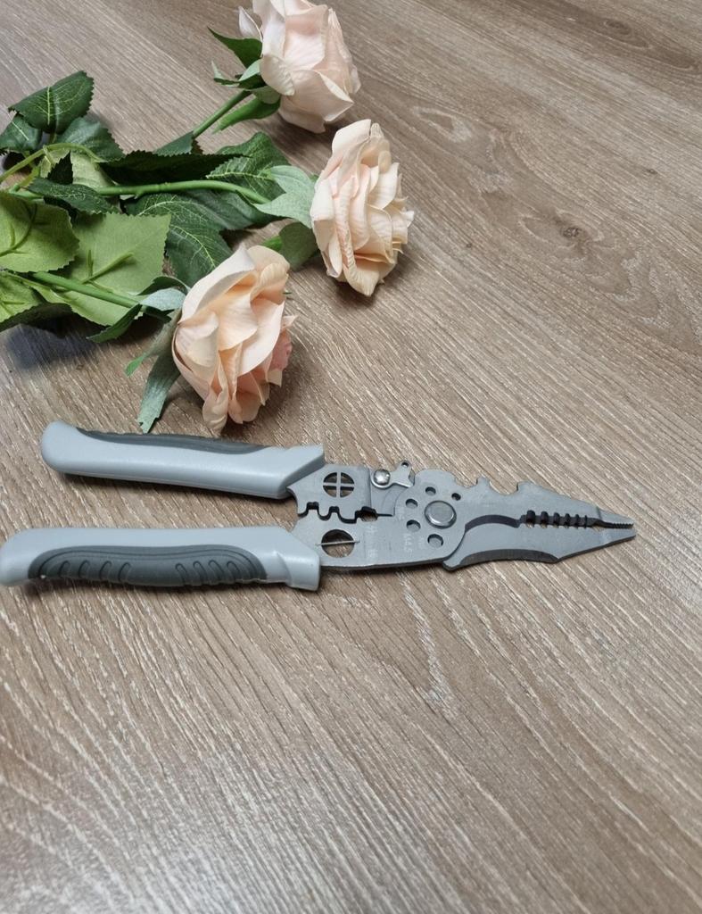 ❤️👍Купила эти многофункциональные пассатижи-кримпер, и честно — не ожидала, что вещь окажется такой удобной и продуманной. Инструмент выполнен из прочного металла, чувствуется хорошая сталь — ничего не люфтит и не болтается. На ручках — прорезиненные накладки, благодаря которым инструмент удобно держать даже мокрыми или грязными руками, не скользит и не натирает. Что понравилось больше всего: Инструмент объединяет несколько функций: можно обжимать клеммы, зачищать провода разных диаметров, резать провод и работать как обычными плоскогубцами. На металле есть маркировка, указаны диаметры проводов и отверстия под разные типы обжима — не нужно думать «куда вставлять». Ход мягкий, инструмент открывается и закрывается без усилий, есть фиксатор, чтобы пассатижи не раскрывались в ящике с инструментами. Лезвия острые — провод режется без “жевания”. Эргономичные ручки — работать можно долго без усталости. Муж использовал уже не раз — собирал удлинитель, менял клеммы в авто. Для бытового и даже полупрофессионального использования — отличный вариант. За свою цену инструмент полностью оправдывает себя, заменяет несколько отдельных приспособлений. Если нужно универсальное решение для электромонтажа — очень рекомендую!