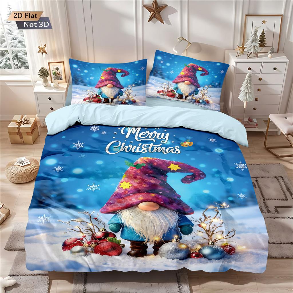 3 предмета Рождественский гном с принтом Бесшовный Постельный набор с несколькими размерами Постельное украшение Спальни Общежития Машинная стирка