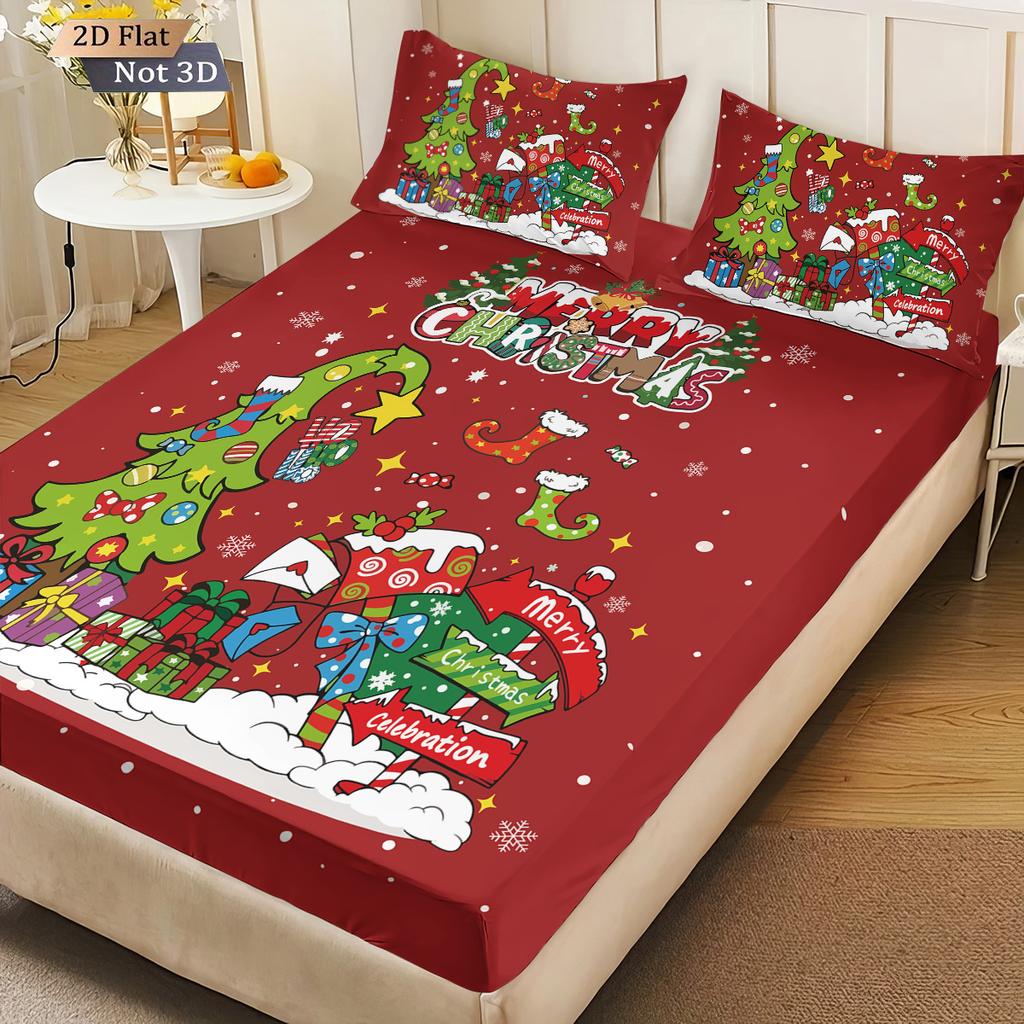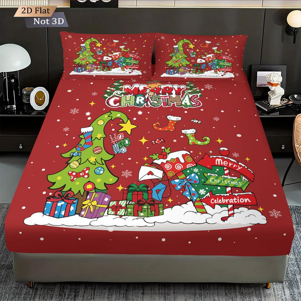 Набор простыней без резинки с абстрактным красным принтом «Рождественская елка» из 3 предметов, несколько размеров, покрывало для кровати, спальное белье для спальни, праздничное украшение
