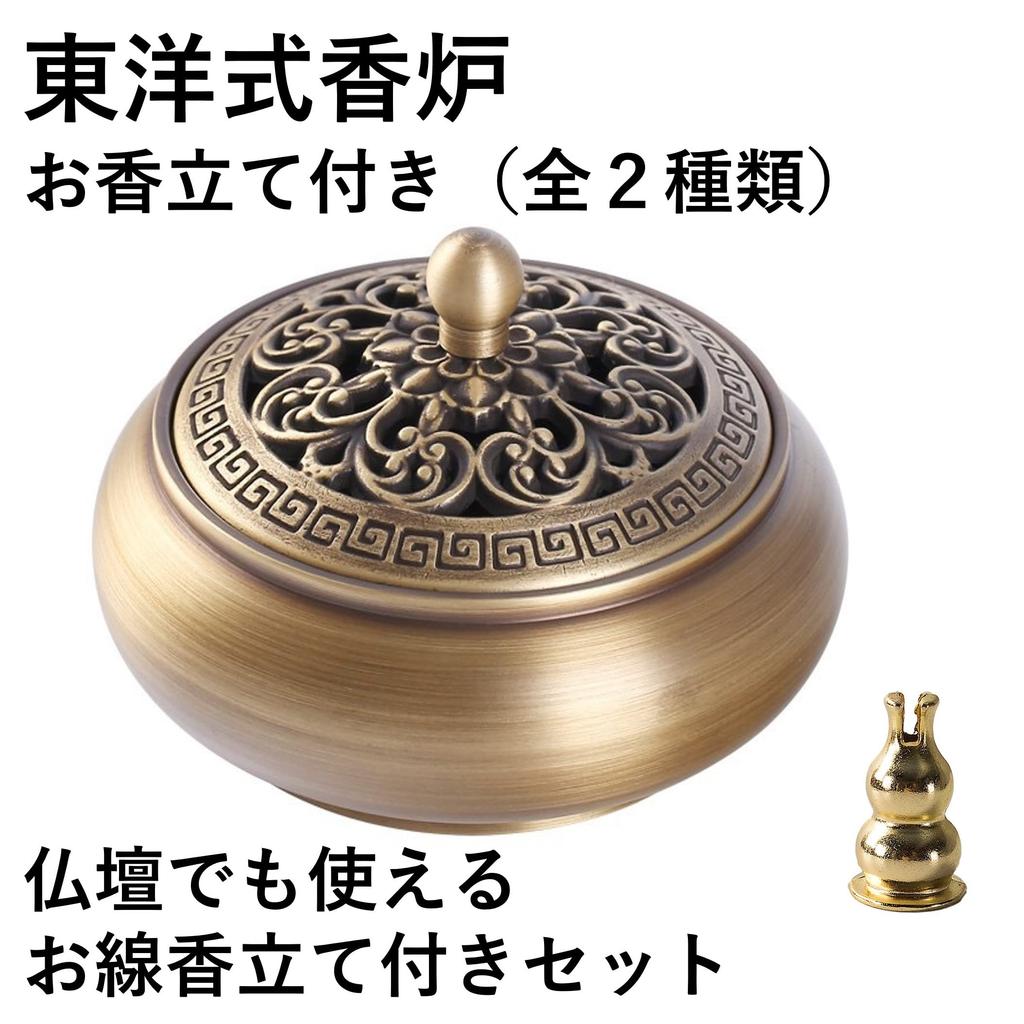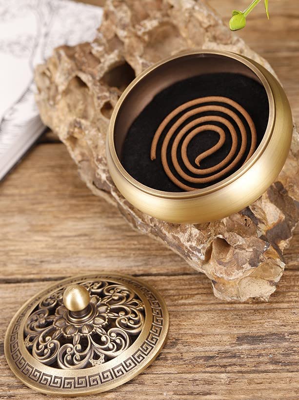 [BERESHITH] Oriental-style Incense Burner and Incense Holder Set with Lid, Antique Copper, Stylish Interior, Buddhist Altar Accessories (Small)