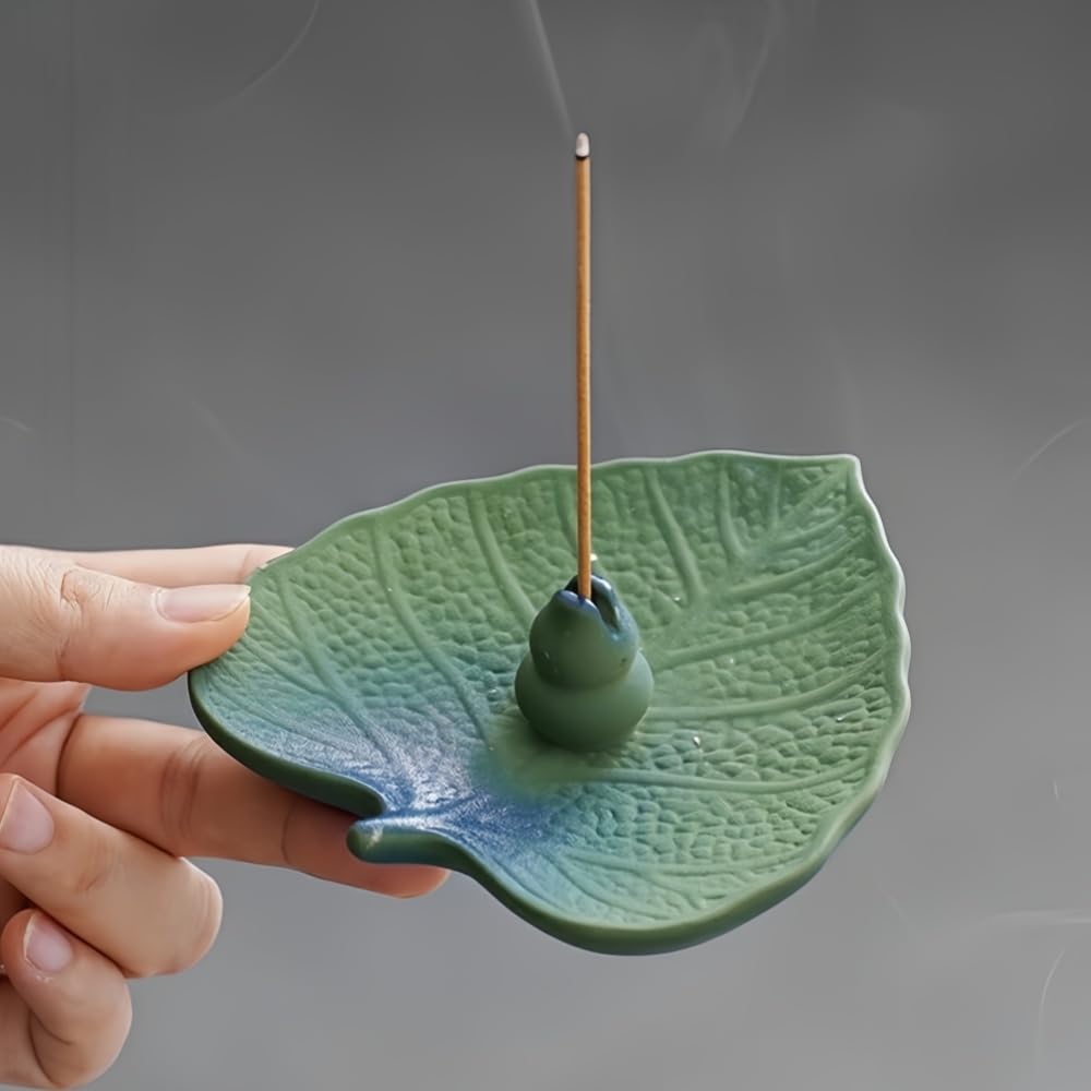 Подставка для благовоний, Держатель для благовоний, Тарелка для благовоний, Горизонтальная, Керамическая, Буддийский алтарь, Лист БодхиГора (Лист Бодхи)