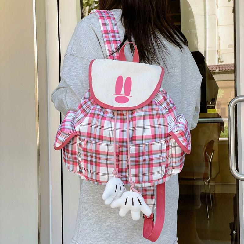 Милый сладкий мультяшный рюкзак-кукла, розово-белый клетчатый, нишевый дизайн, сумка для девочки, студенческий рюкзак, подарок