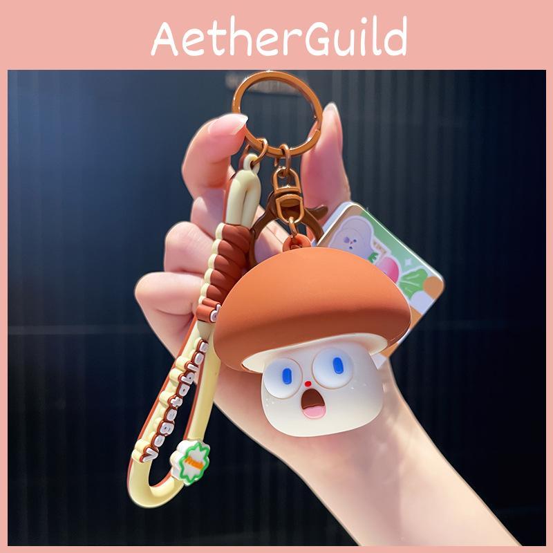 Восхитительный дизайн: Этот брелок, украшенный разнообразными очаровательными грибами и кошками в мультяшном стиле, добавит причудливый штрих вашим ключам или сумкам.