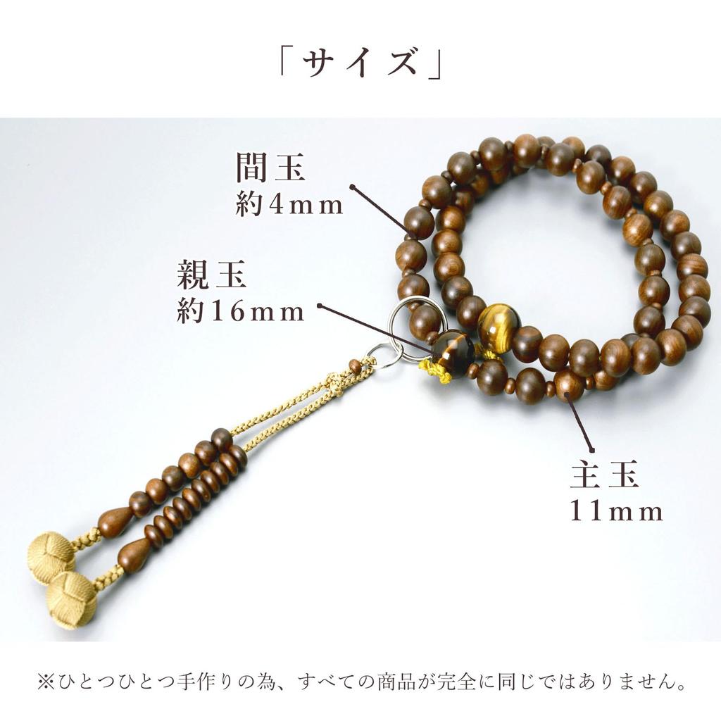 Men's Buddhist Prayer Beads, Double Strand, Made in Kyoto, Made of Matte Sandalwood and Tiger's Eye Stone, Odamaki, Jodo Sect, Funeral, Buddhist