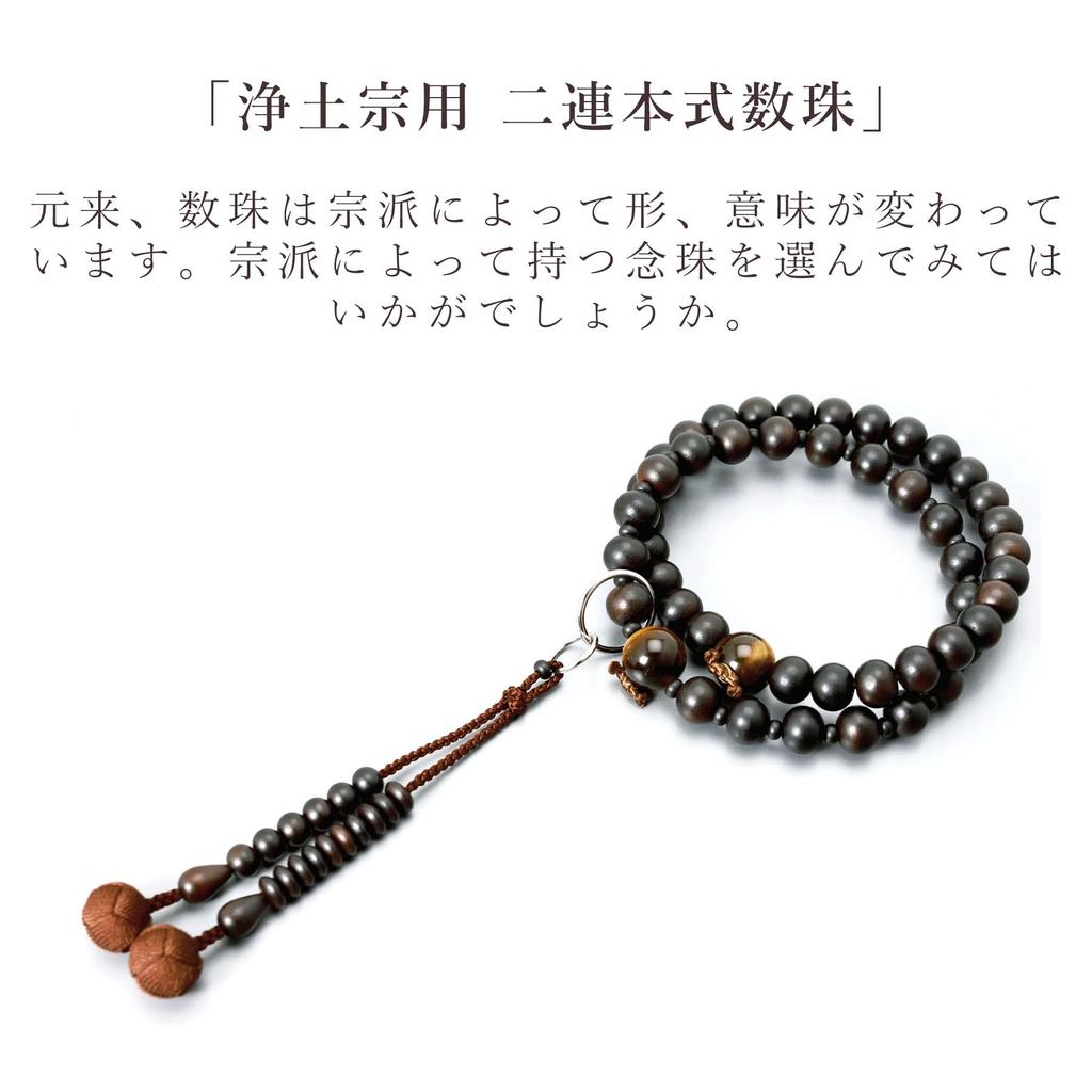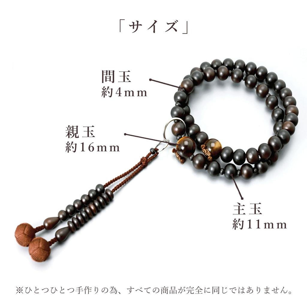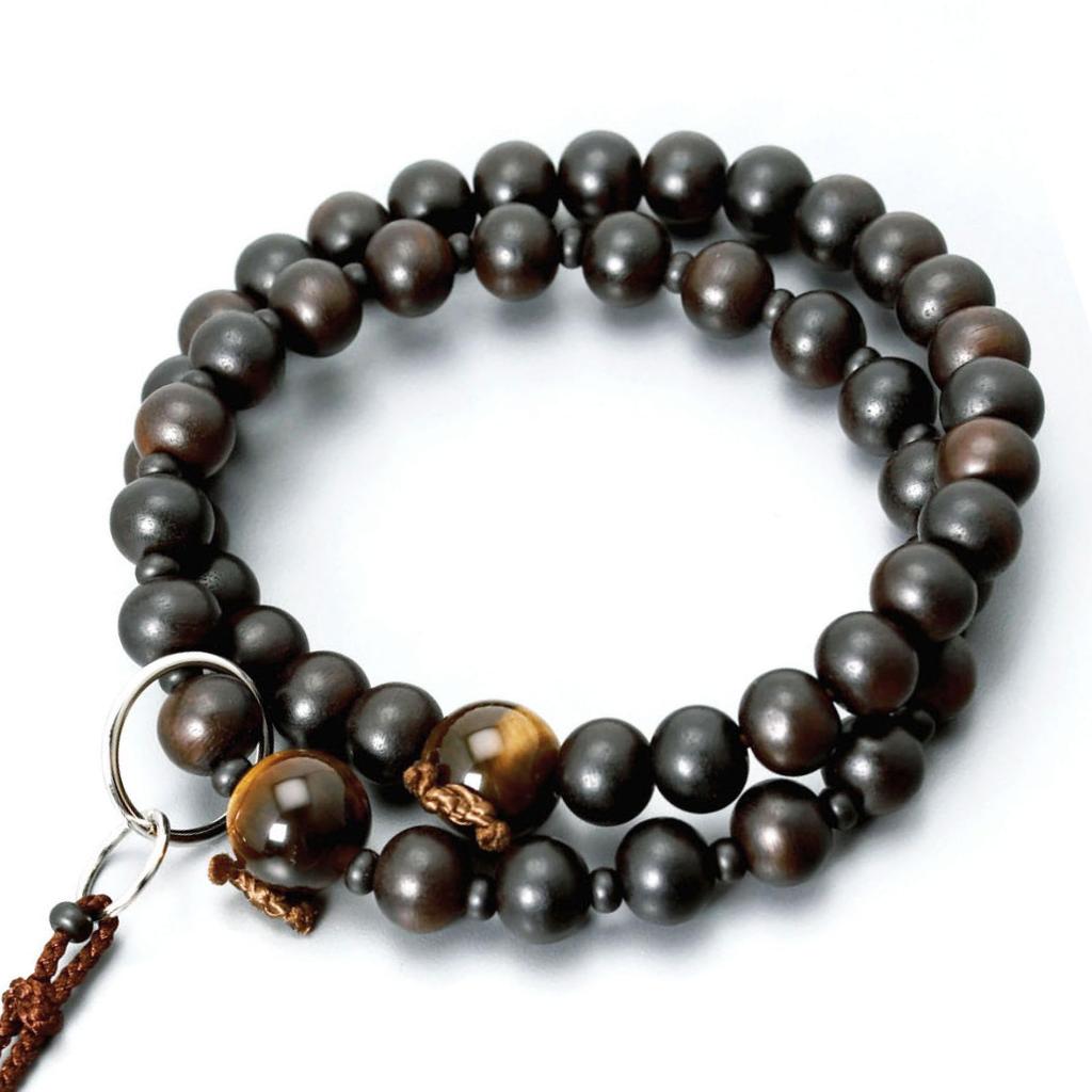 Мужские двухрядные киотские молитвенные бусы, изготовленные из матового полосатого эбенового дерева и камня «тигровый глаз», Одамаки, секта Дзёдо, подходят для похорон, буддийские