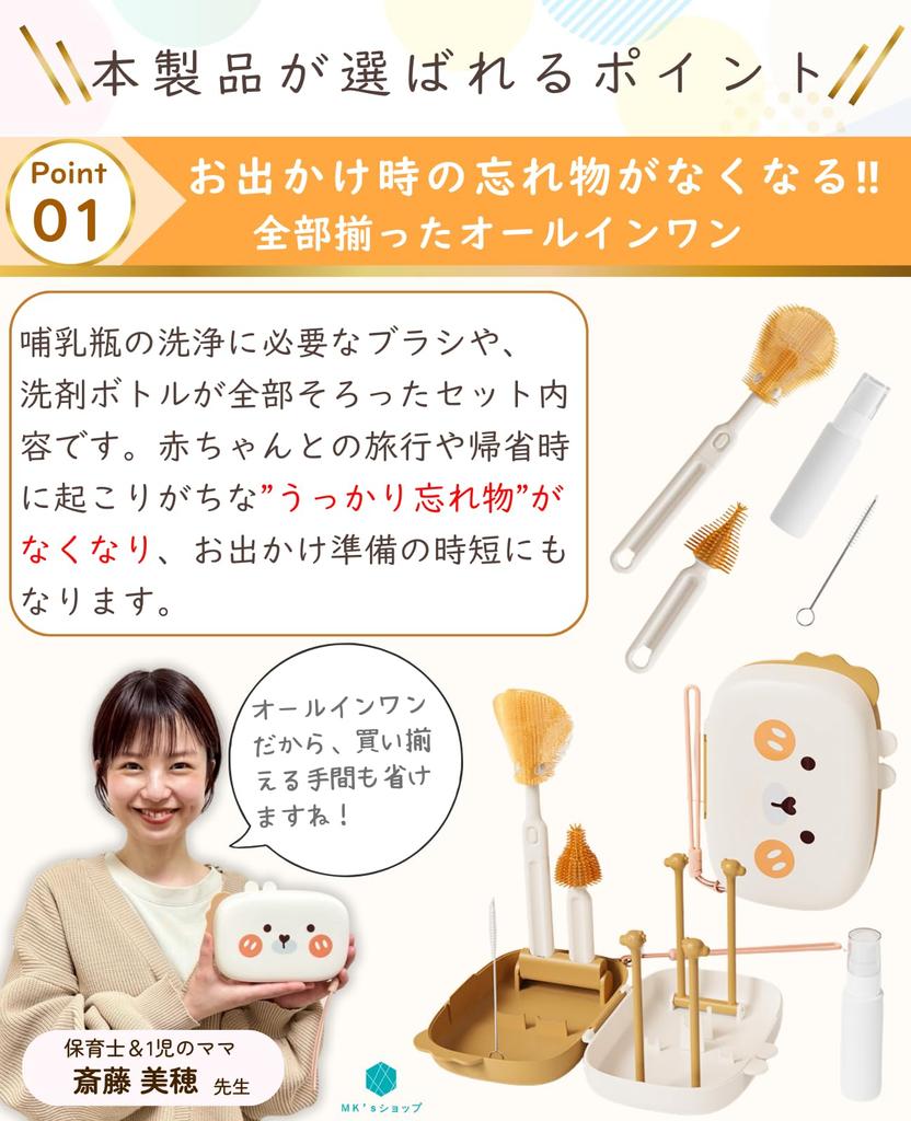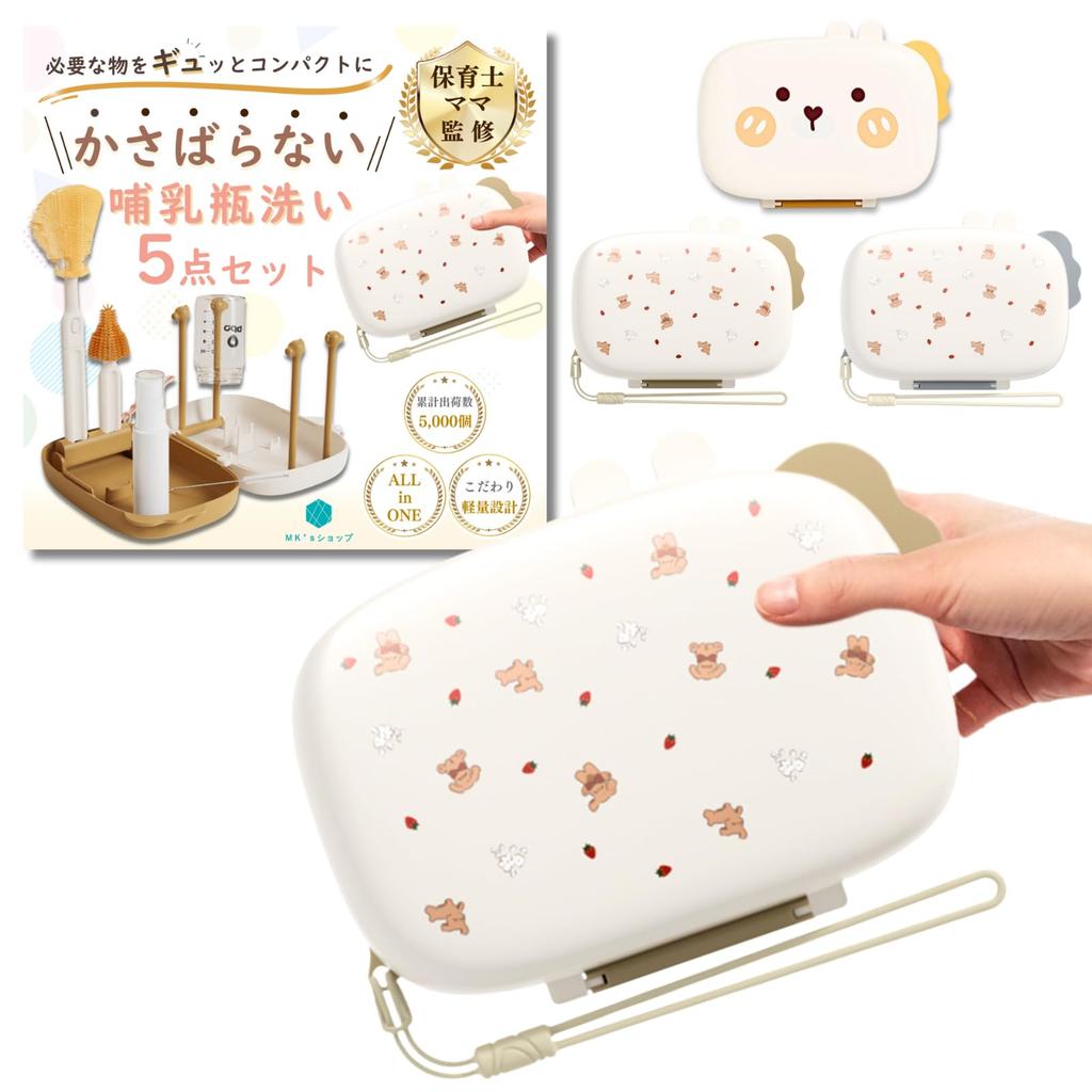 [Под присмотром воспитателя] [Компактный дизайн] Портативный дорожный набор для мытья бутылочек с сушилкой и щеткой, MK's Shop (бежевый)